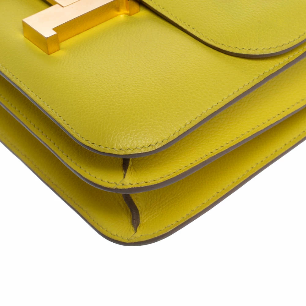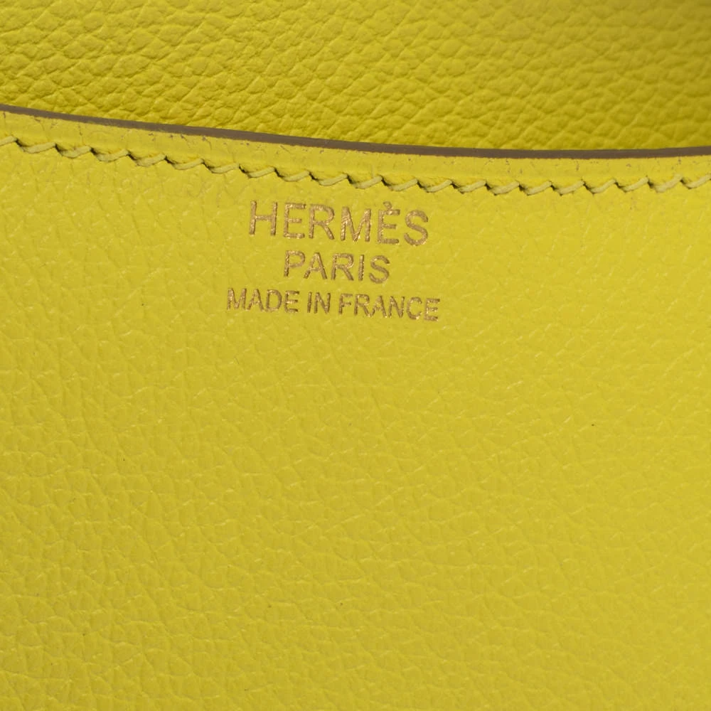 Seen in the arms of many Hermes lovers, Constance is like a rare diamond from Hermes. This wondrous work of art is presented in leather and secured by an H on the flap. It has undergone the excellent work of talented artisans, with every stitch giving praise to high quality and authenticity. Its flap grandly opens to reveal a well-sized leather interior with a zip pocket and the bag is complete with a long shoulder strap. Brimming with lavish details and artistry, this wondrous lime yellow creation deserves to be owned by no one but you.