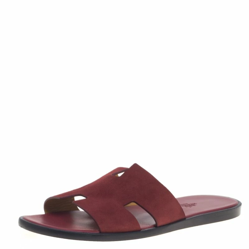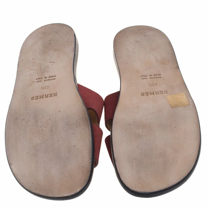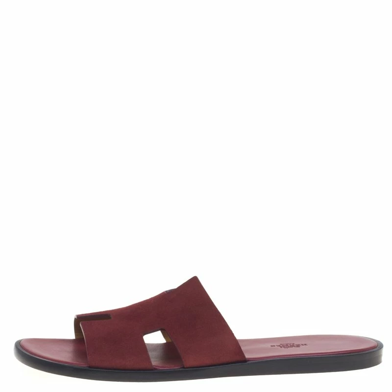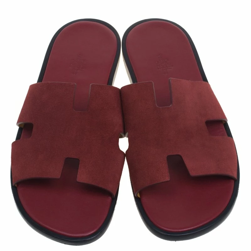 Hermes is a brand that epitomizes art and creativity. All their designs have a luxurious blend of comfort and style. These maroon Izmir sandals are made of quality suede and lined with leather on the sole. It features the iconic H on the vamp, making it easy to slip on over all your casual outfits.