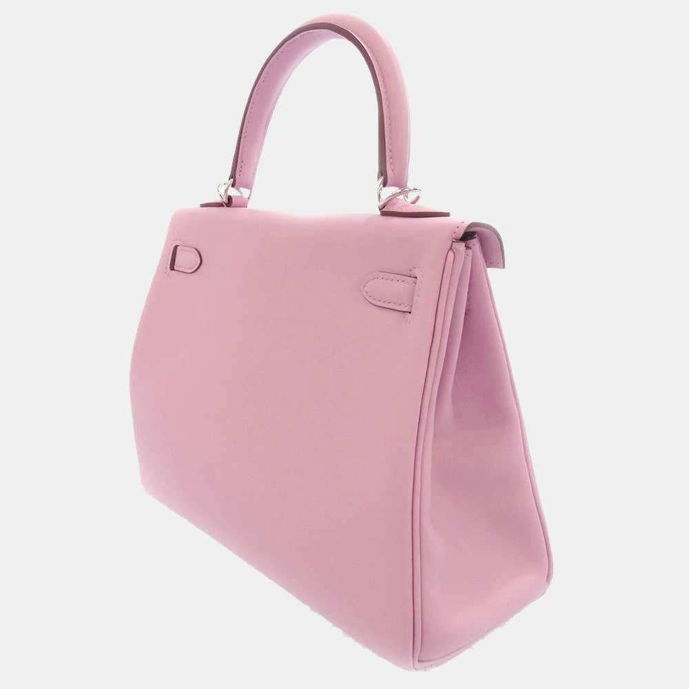 If your go-to everyday bag needs an update, go for this elegant Hermes Kelly bag. Crafted from Mauve Sylvestre Swift leather, this chic bag is characterized by a rolled top handle, palladium hardware, padlock, clochette, and detachable shoulder strap. This well-balanced bag has roomy interiors to hold all your belongings.