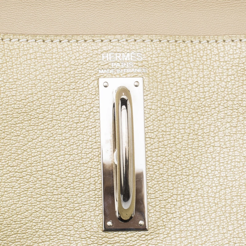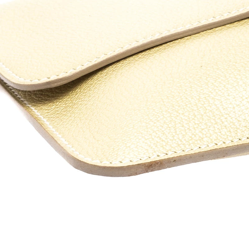 The Chevre de Coromandel clutch by Hermes is a creation that is not only well-made but also high in appeal. It is a design that is simple and sophisticated, just right for the woman who embodies class in a modern way. Meticulously crafted from leather, it has a metallic beige hue and a flap that reveals a well-sized interior. High on style and iconic in design, this clutch deserves to be yours.