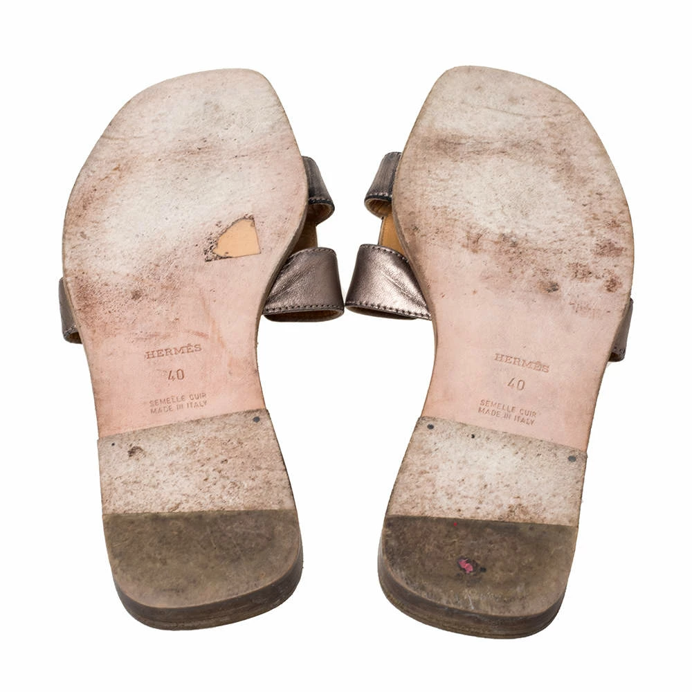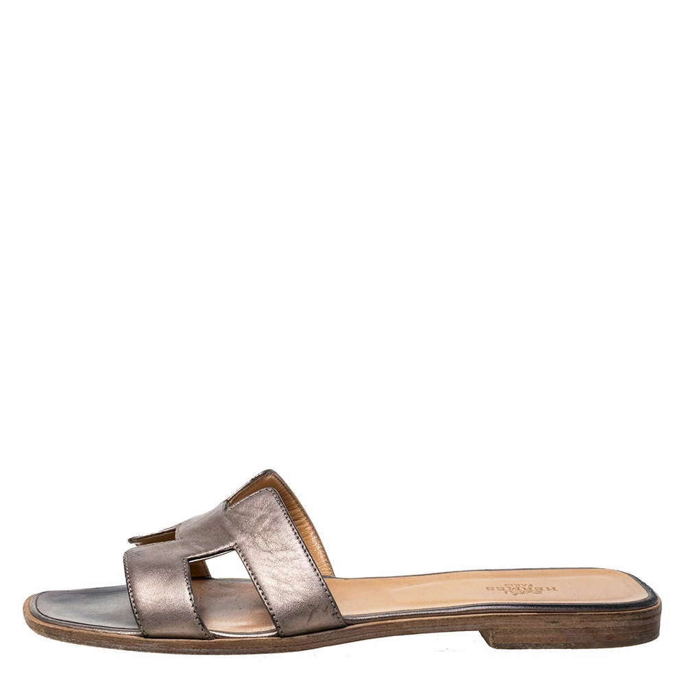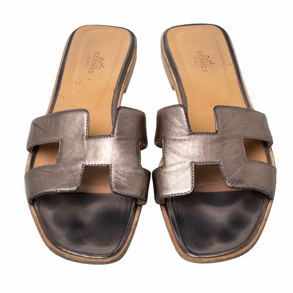 Put your best foot forward this season in these pretty Hermes flats. These metallic brown Oran flats have been crafted from leather in Italy and they feature the iconic H on the vamps as well as insoles meant to provide comfort at every step. These flats are sure to attract admirers!