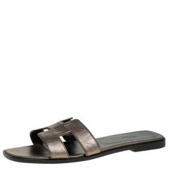 Put your best foot forward this season in these pretty Hermes sandals. These metallic Oran sandals have been crafted from leather in Italy and they feature the iconic H on the vamps as well as insoles meant to provide comfort at every step. These sandals are sure to attract admirers!