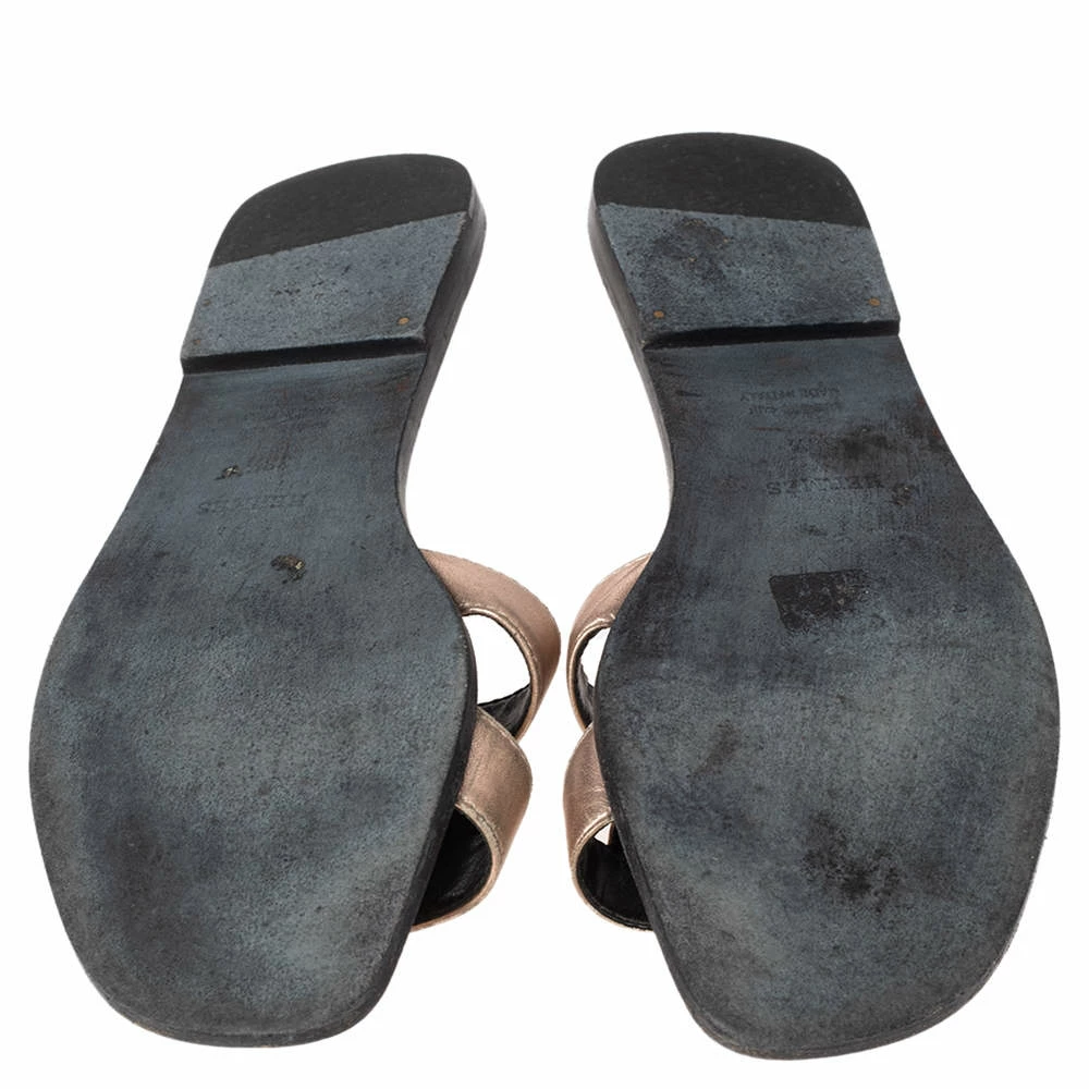 Hermes provides their audience with exclusive designs that are unfailingly modern and poised. These Oran flats lend your feet a unique style and appearance like none other. They flaunt a cut-out strap across the upper, which is meticulously crafted from metallic pink leather. Find true comfort as you walk in these flats.
