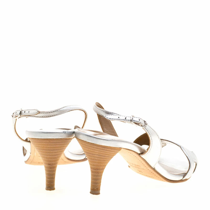 Effortlessly stylish and comfortable to wear for longer hours, these Hermes Night slingback sandals will never fail to impress you. Crafted in metallic silver leather, these sandals feature the signature H cutout at the vamps along with a silver tone buckled slingback strap and a wooden kitten heel that will take you through the day and night with ease.