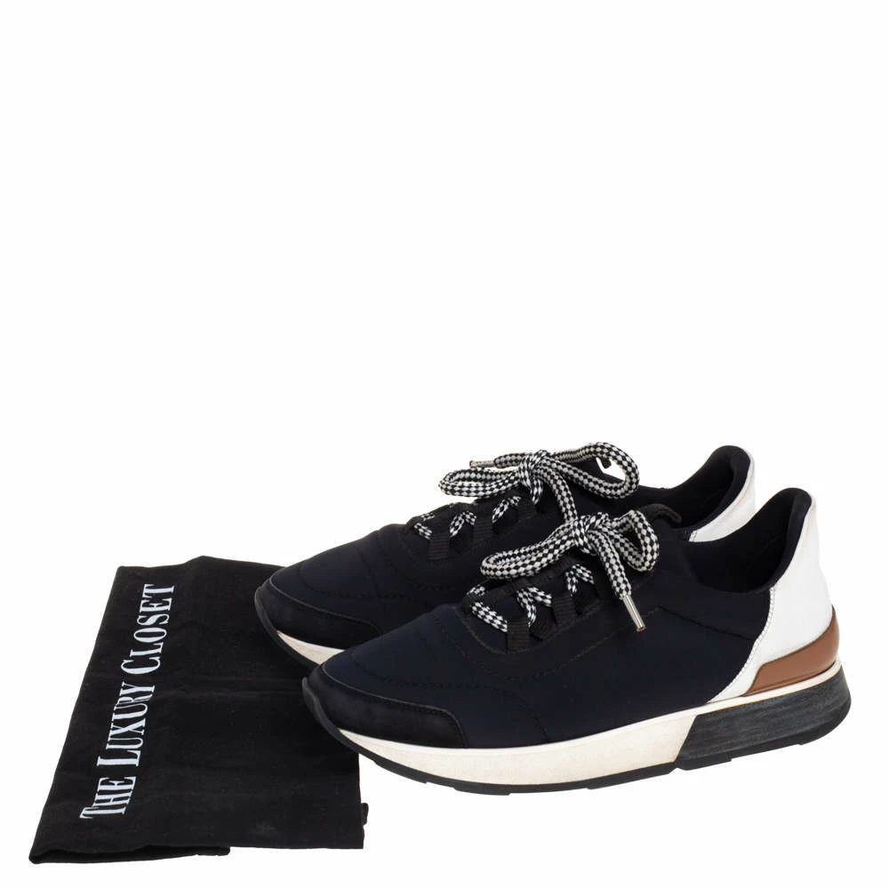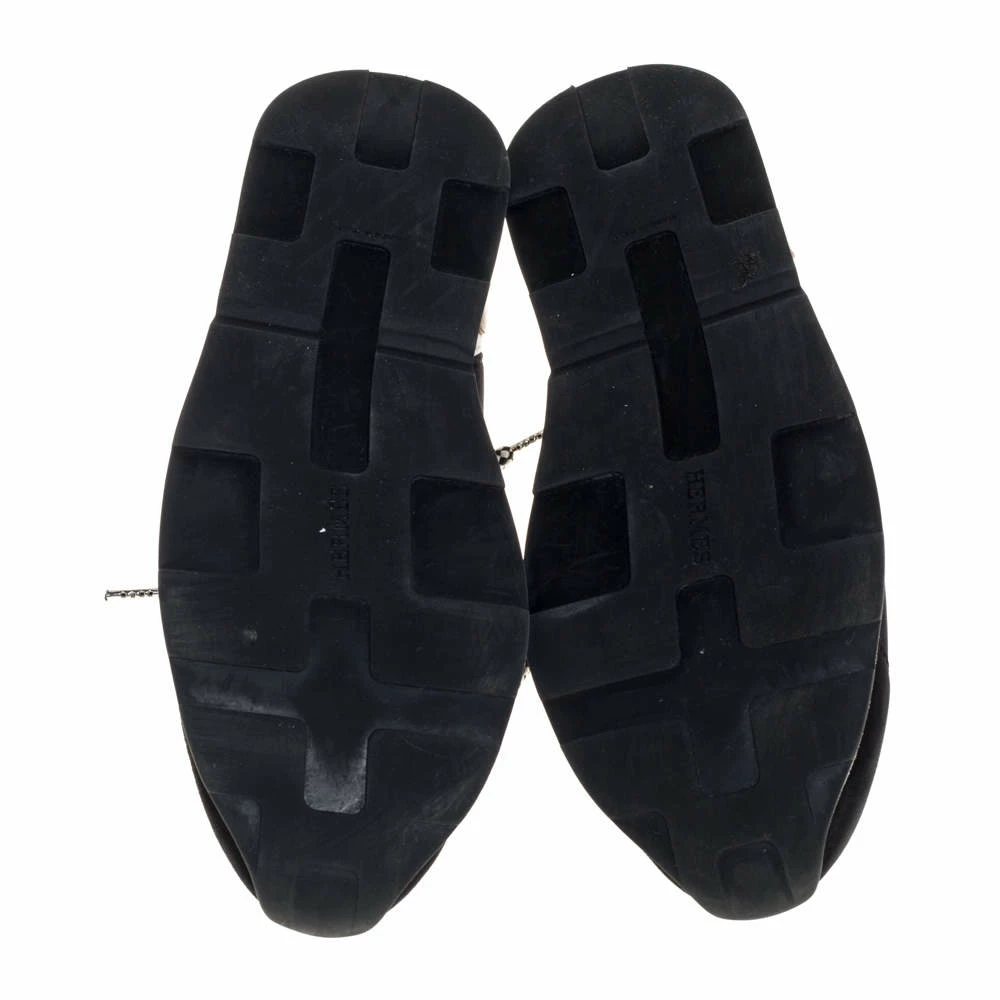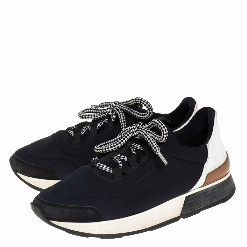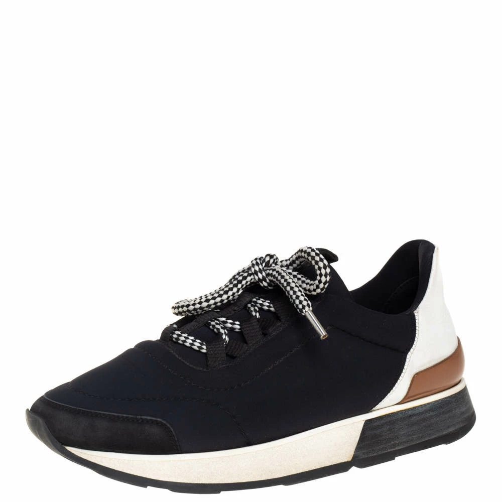 Pull off a stylish look with this pair of Miles sneakers from Hermes. Crafted from a combination of fabric and leather, this pair embodies a true blend of luxury and comfort. The shoes feature lace-up fronts, tonal stitching, round toes, and leather-lined insoles. They are ideal for everyday wear.
