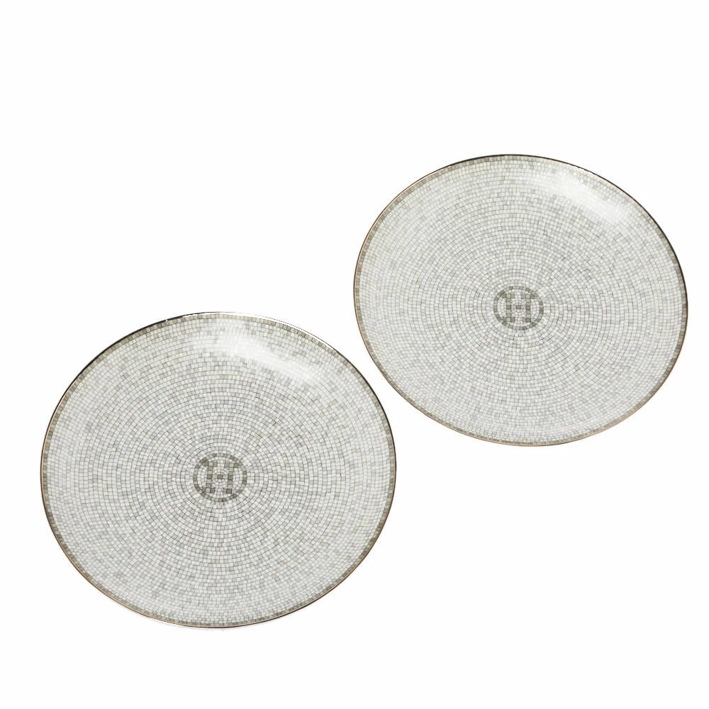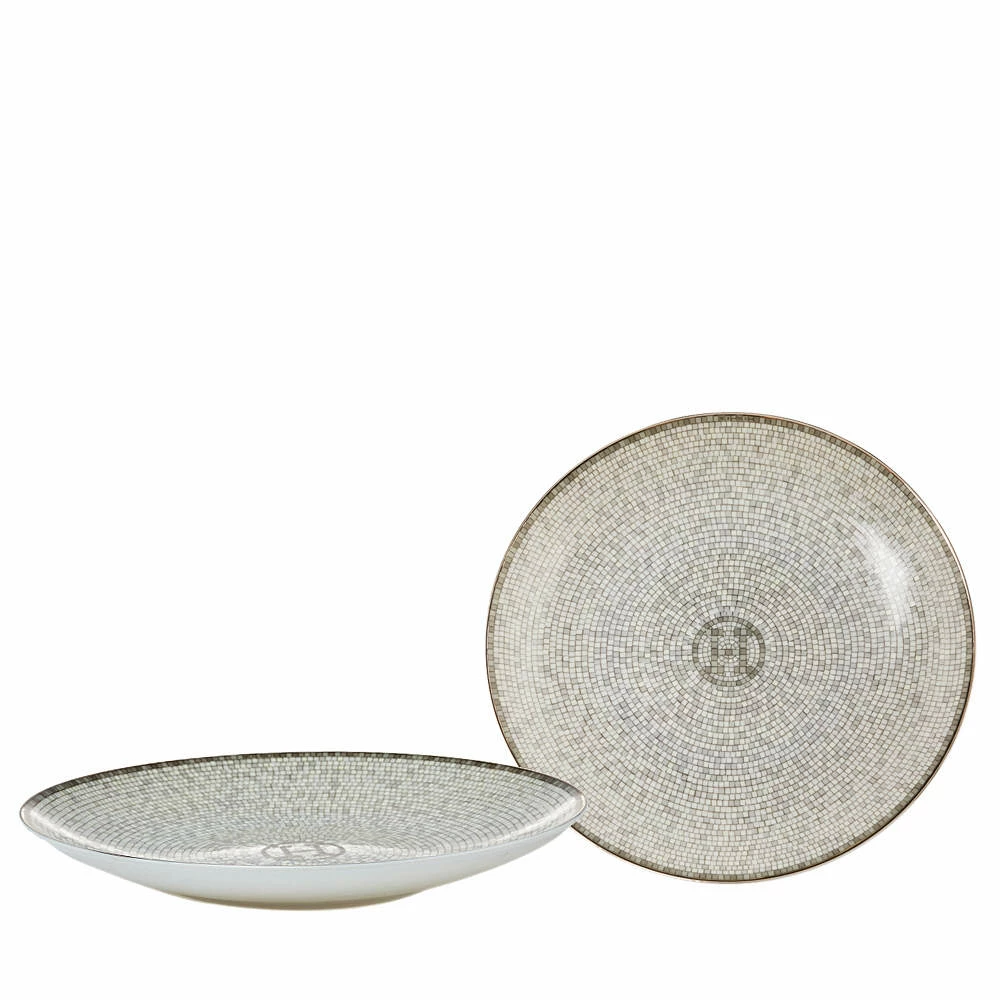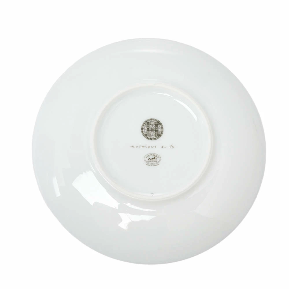 The Mosaique au 24 collection is a tribute to 24 Faubourg Saint-Honoré, the Hermès home. The patterns used are from the mosaic covering the store’s floor. Geometric friezes are laid on porcelain to complete this bread and butter plate set.