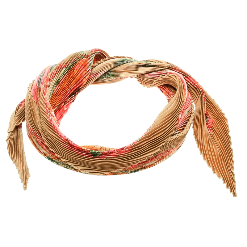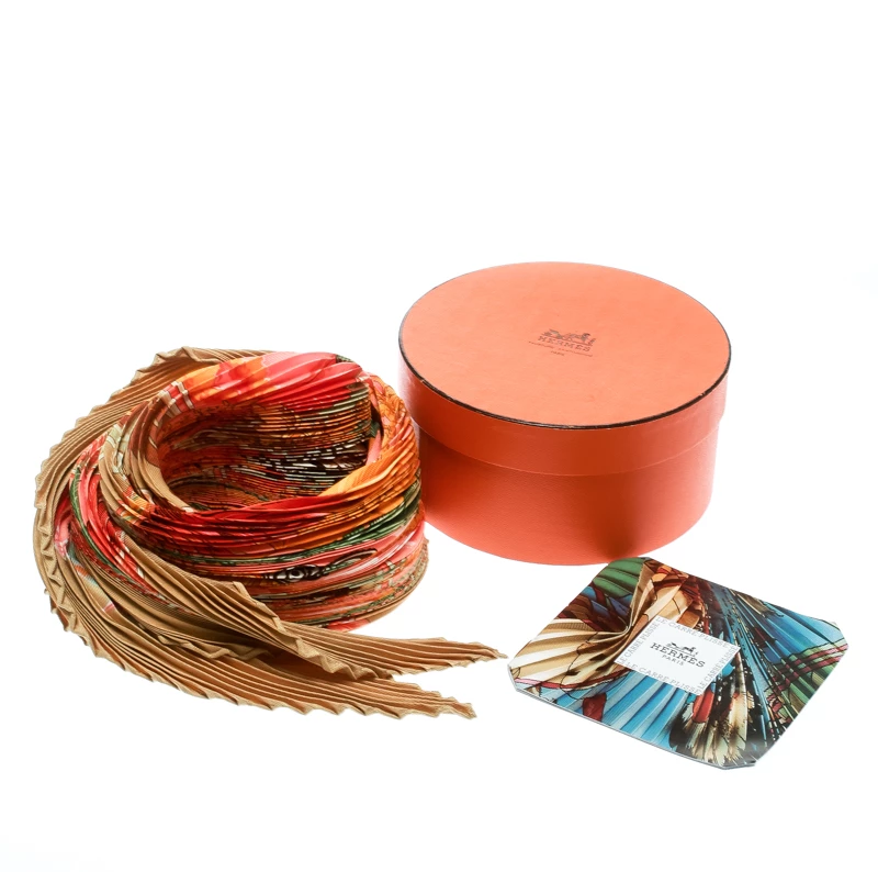 This scarf by Hermes is a chic accessory crafted in plisse silk with Amazonia print, designed by Laurence Bourthoumieux, adorned over it. Get a style upgrade on your basic outfits with this multicolored scarf. This versatile scarf is an asset, as it can style up almost all your entire wardrobe.