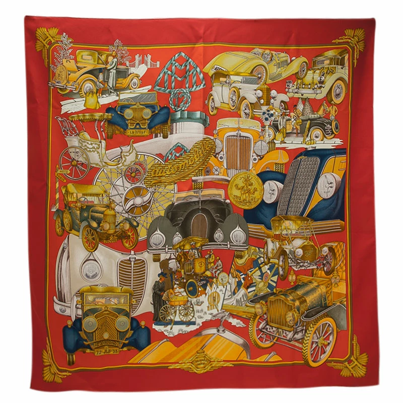 Scarves add a great deal of statement to your attire. This Hermes scarf with a brilliant multicolor automobile print is made from silk and has a square shape. Adorn it with a casual outfit or with a formal one, it is sure to make you look special!