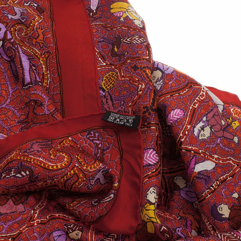 Experience the rich colors of India with this Hermes scarf. This twill scarf with an intricate design is reminiscent of the vintage Indian folk art representing the royals, traditions, landscapes and lifestyle.