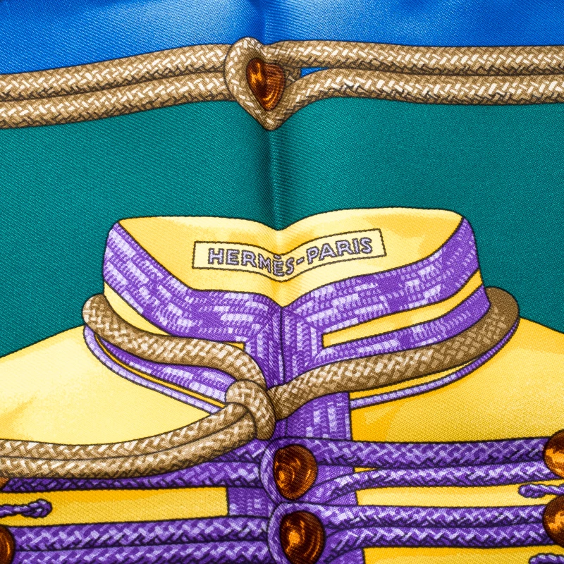 Beautifully cut from silk, this Hermes pocket square features a Brandebourgs Military print and hemmed edges. Make this lovely piece yours today, and accessorise it with your suits.