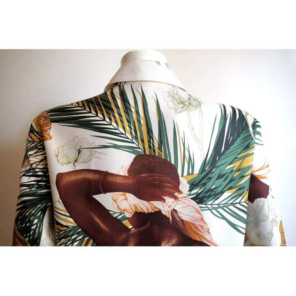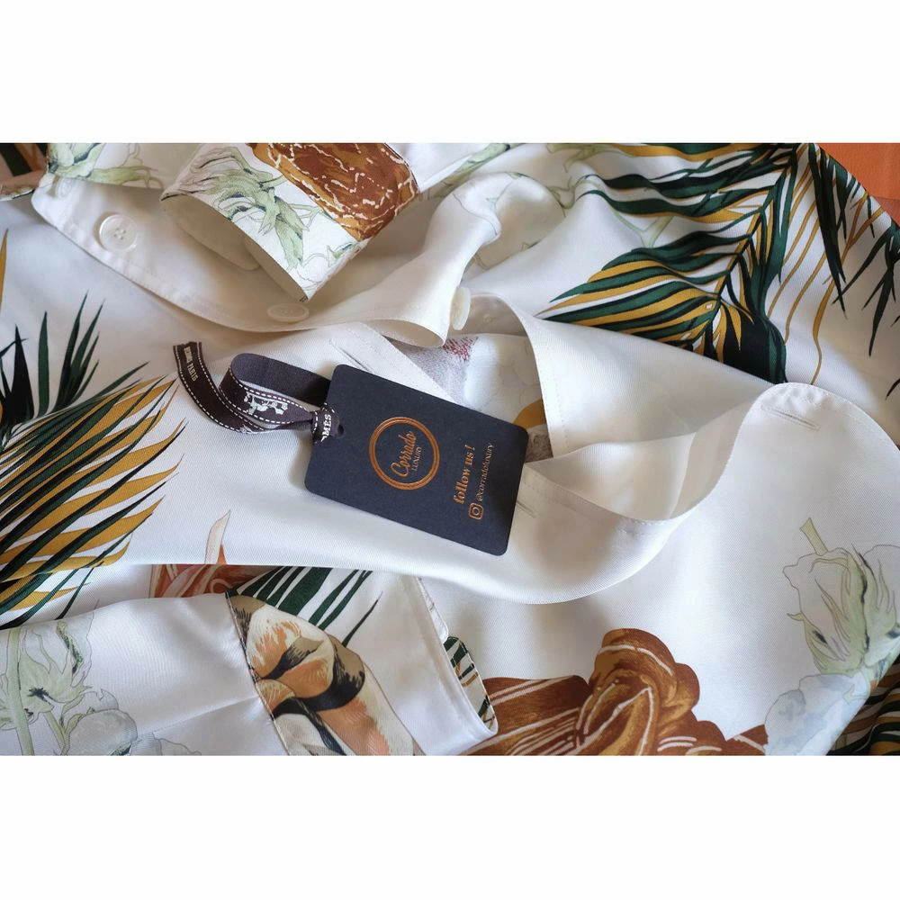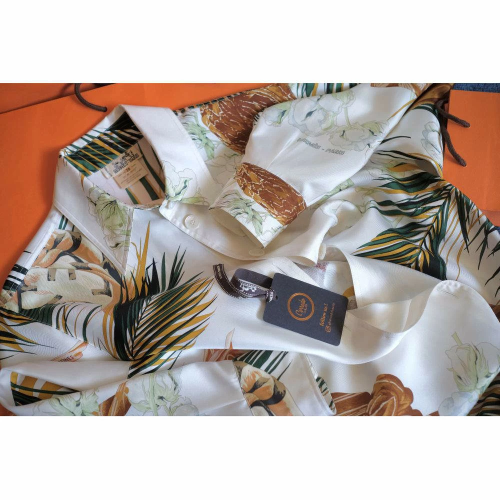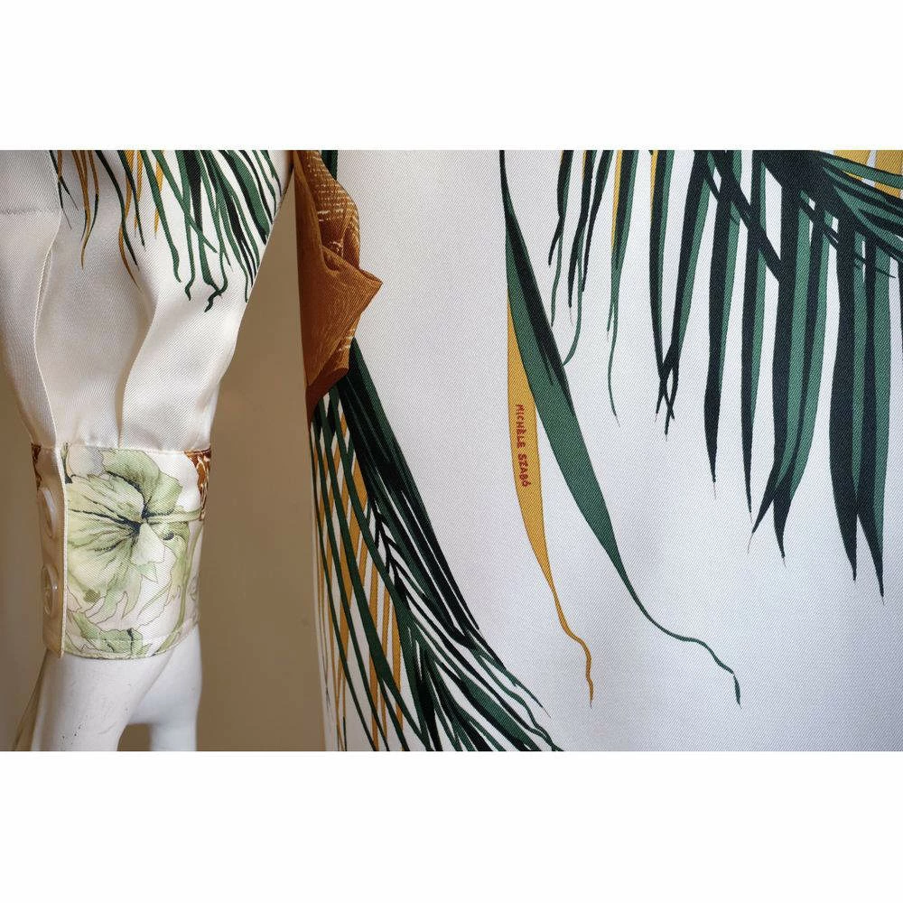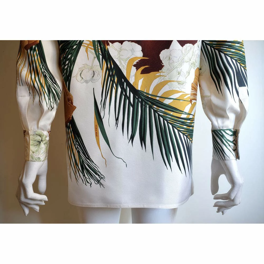 The perfect blend of style and elegance, this gorgeous Hermes Camicia shirt will elevate any style. Made from luxurious silk with mother-of-pearl buttons and two side splits, this charming multicolor piece is perfect for dinners, cocktails, and birthdays galore.