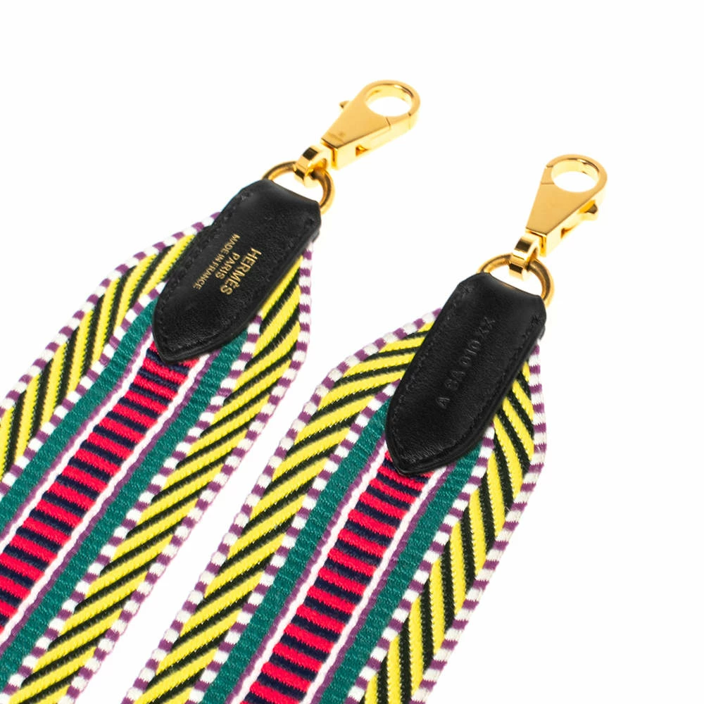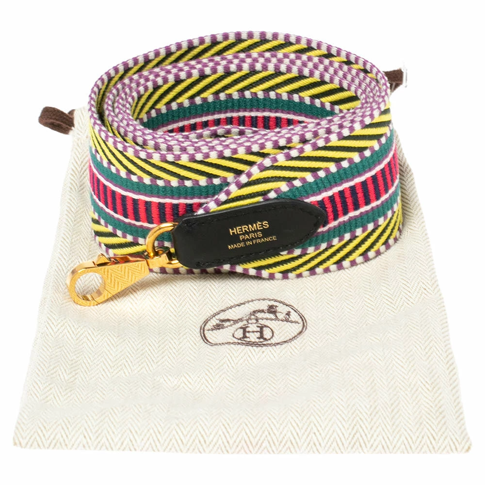 Feel a different experience when you carry your same bag with this Hermes shoulder strap. It is crafted from canvas in a spread of colors. It is complete with two gold-tone clasps for you to attach to your bags.