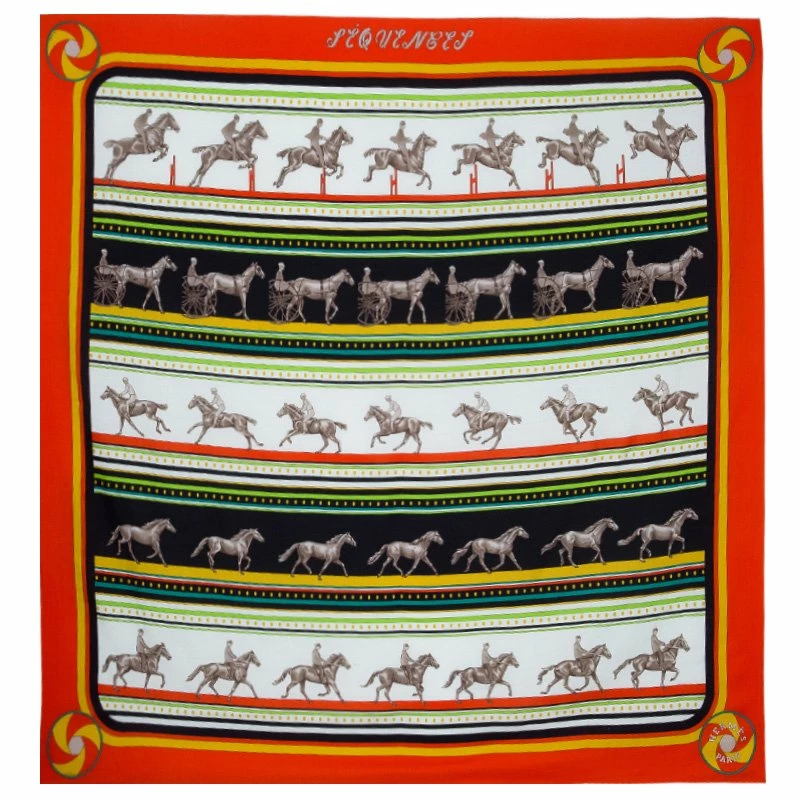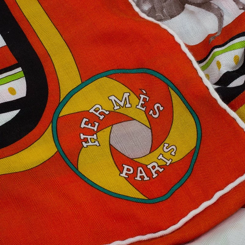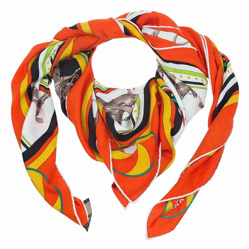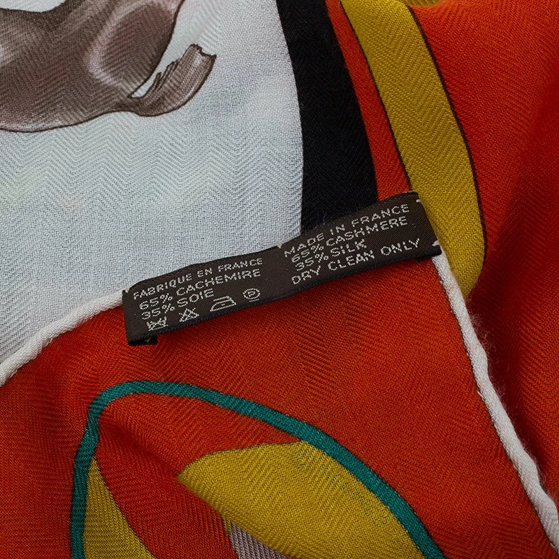 Pep up your closet with this Hermes shawl and bring around the riot of colors. The cashmere and silk blended weaving is accented with unique horse print and along with its youthful colors, this shawl will make you the cynosure of any gathering. It features brand detail at one of its corners. It has been designed by Cathy Latham, best known for designing the Cles scarf, have designed this scarf as well in 1983.