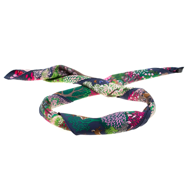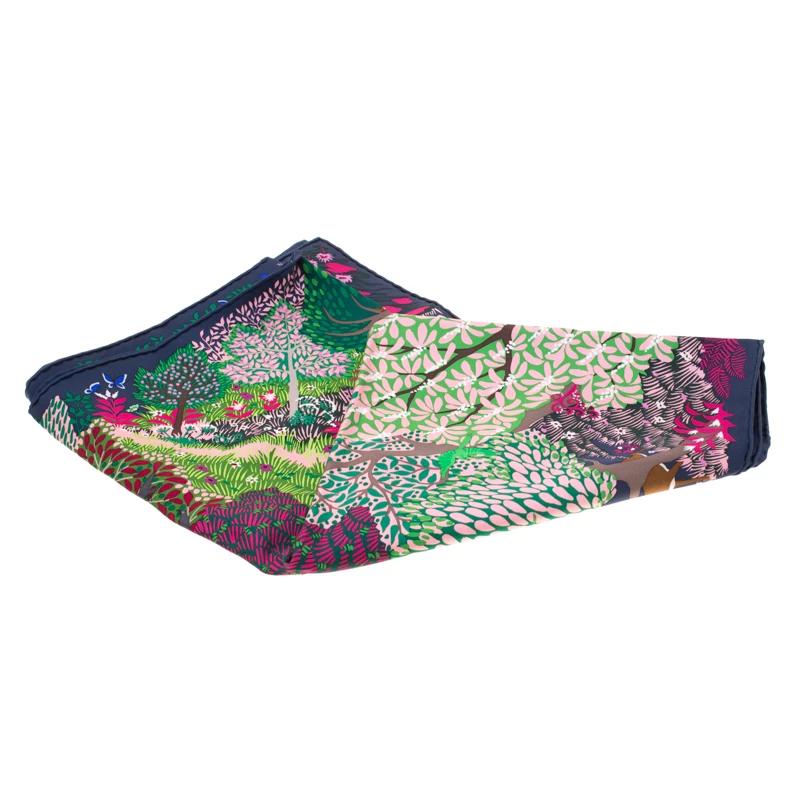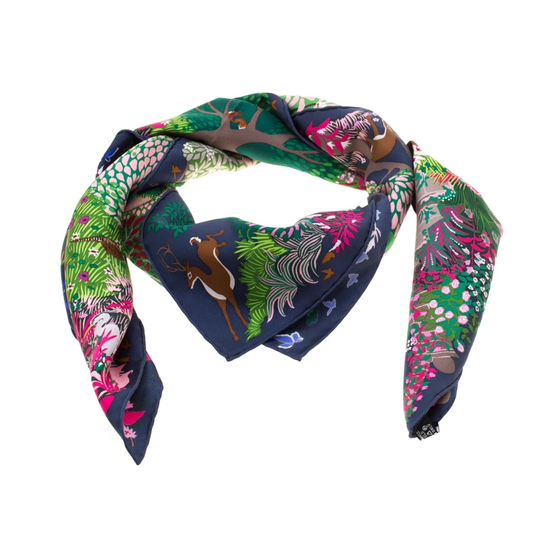 Each Hermes scarf is designed by artists who revel in their artforms, thus making them a treasure. This scarf, cut from silk, has a mix of colours and prints of trees that evoke the beauty of nature. It has a delicate and soft feel.