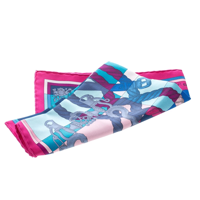 Featuring Della Cavalleria print all over, this chic pocket square from Hermes carrying multicolours is a sophisticated piece which will add a similar appeal to your ensemble. It is cut from silk with neatly rolled edges.