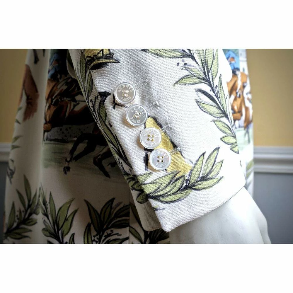 This stylish Hermes Giacca blazer can add an elegant flair to any look. Made from luxurious silk, this multicolor piece features the Carre motif “Courses A Chantilly” designed by Master Maurice De Tanquoy. Defined by two side pockets with flaps and Hermes Paris logoed mother-of-pearl buttons, this stunning piece will perfectly complement your style.