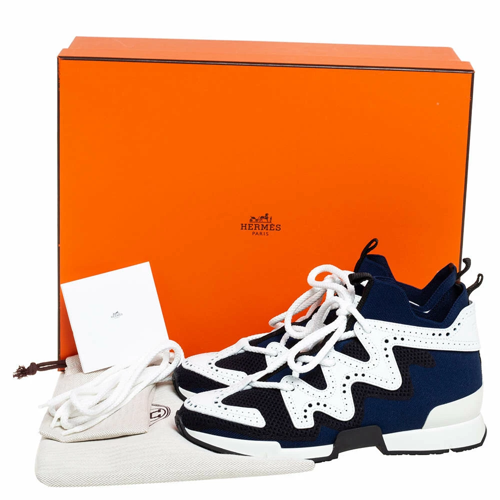 Built to last and add the luxury touch to any outfit, these knit fabric sneakers are all you need. The Hermes sneakers feature contrasting white brogue leather trims, lace-ups on the vamps, and a sturdy rubber sole for ultimate comfort.