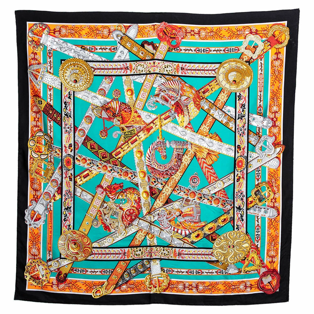 Smartly made from silk, this Hermes scarf features an amazing print all over in varied vibrant hues. It is finished with hemmed edges. Make this gorgeous scarf yours today, and flaunt it like a fashionista!