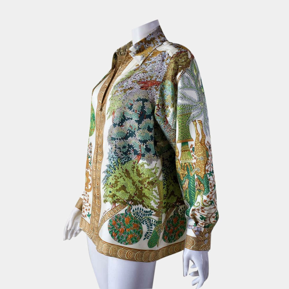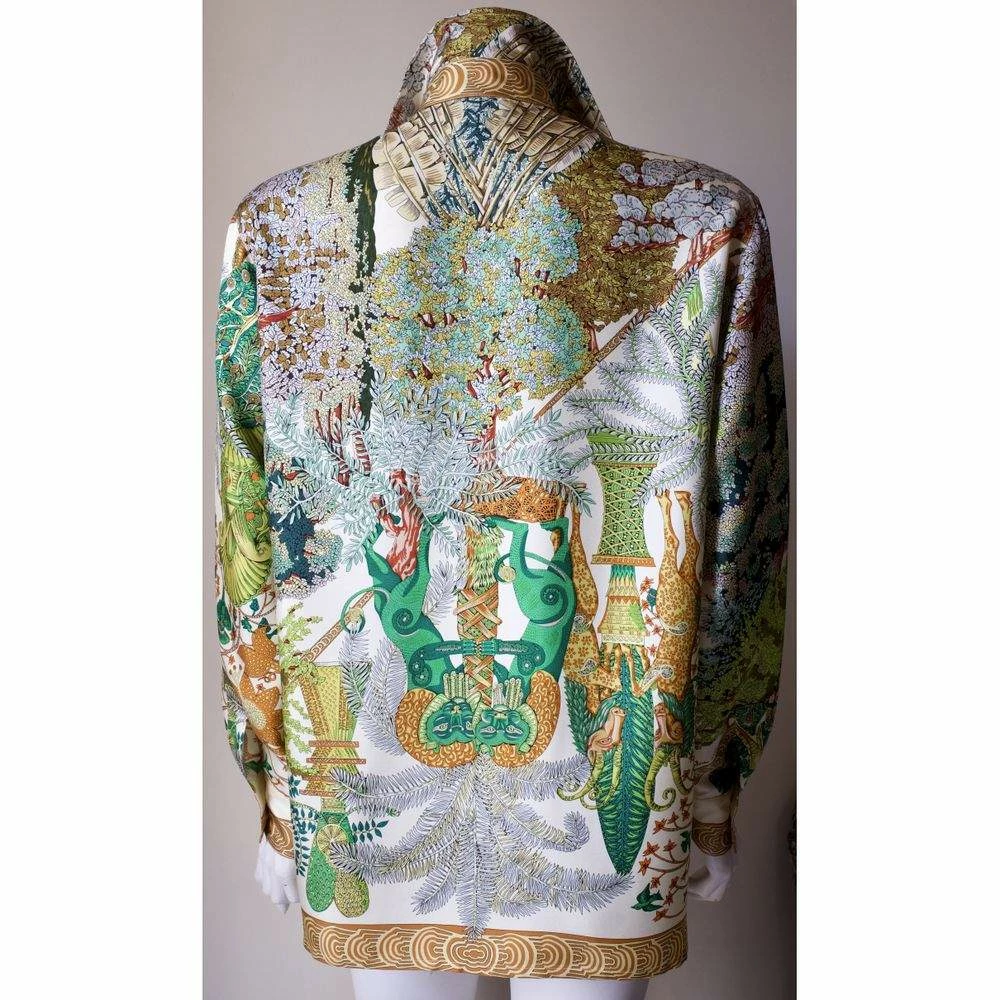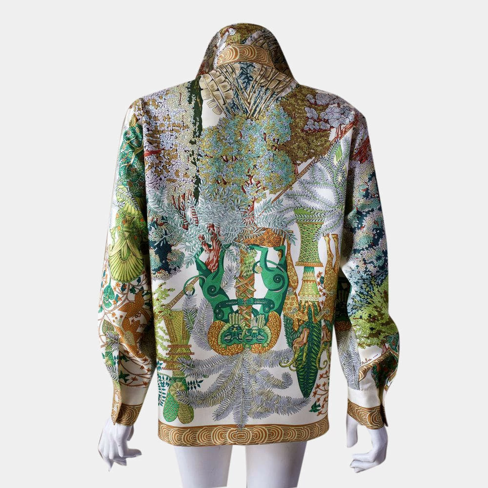 Feel and look beautiful wearing this gorgeous Hermes Parka. Made from luxurious silk, this multicolor piece features the “The Legend Of The Tree” drawing by Master Annie Faivre. Offering a smart fit, this charming piece will add a glamorous flair to your upcoming party.
