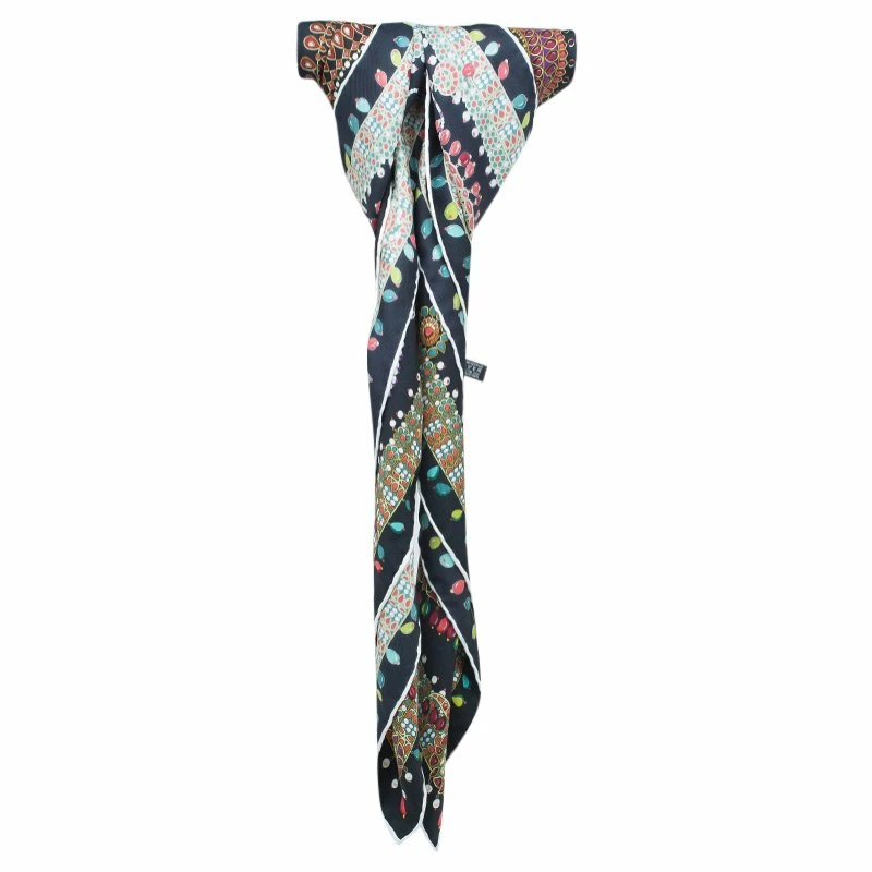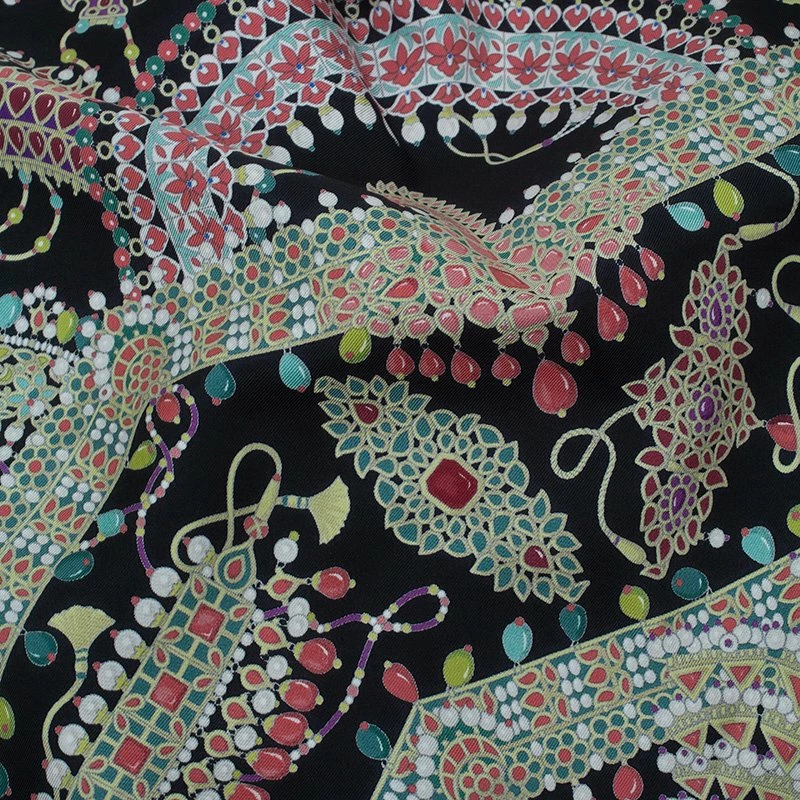 Carry an essence of royalty with this Parures Des Maharajas scarf by Hermes. Made from soft silk, the jewel print on the scarf makes this an elegant choice.