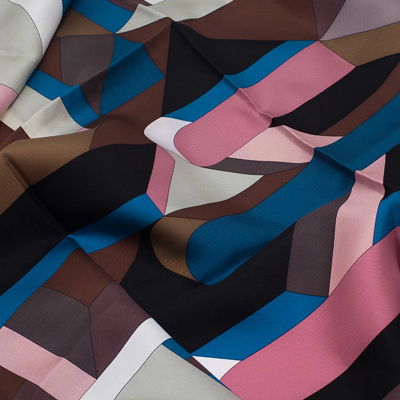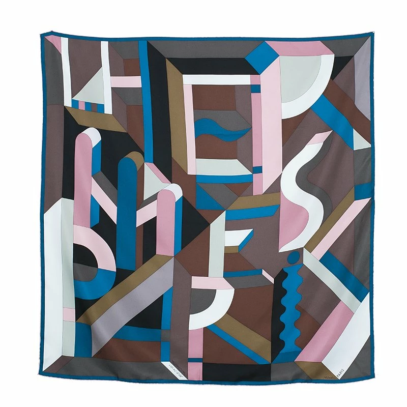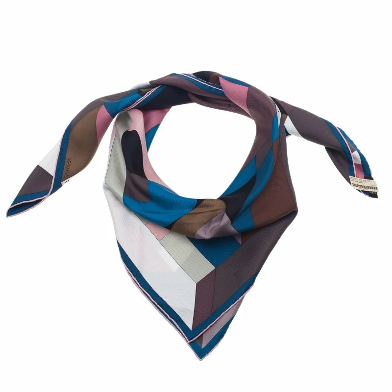 Adorn your neck with this silk masterpiece by Hermes. This lightweight square shaped scarf comes in a multicolored geometrical print.