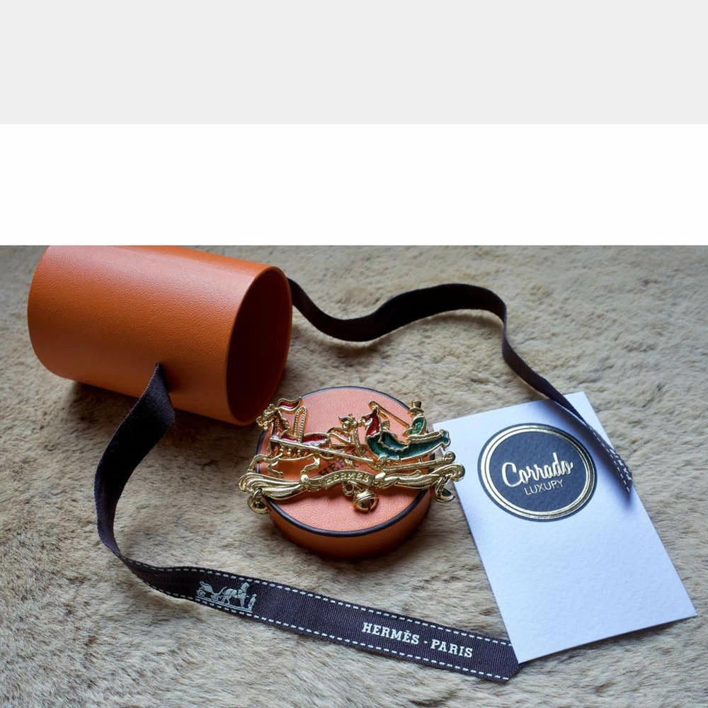 Add a dash of Hermes classic sophistication to your outfits with this fabulous brooch. Fashioned in gold metal and colored enamel, this magnificent piece with its whimsical design and detailed finish can be the perfect conversation starter.