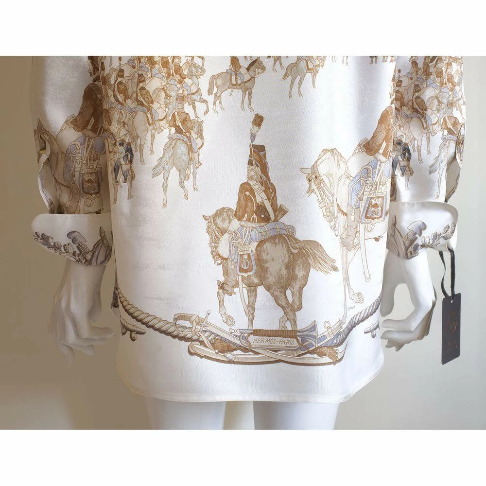 Attain a distinguished style with this gorgeous Hermes shirt. Designed beautifully in premium silk, this multicolor shirt unfurls luxurious softness and elegance in its design and detail. Well-made and versatile, style this piece with a high-waisted skirt or trousers for a chic look.