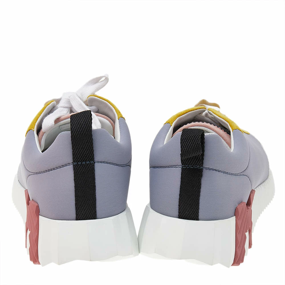 Made of neoprene and suede, these Hermes low-top sneakers offer a modern casual look. The shoes are secured with simple laces and set on rubber soles.