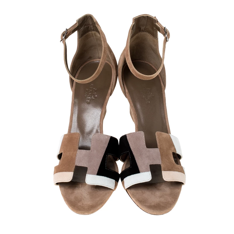 We have our hearts set on these sandals from Hermes. This multicolor pair has been crafted using suede and designed with the signature H on the vamps. They also feature ankle buckle closure and 7.5 cm wedge heels. Take this number out and enjoy both comfort and style.
