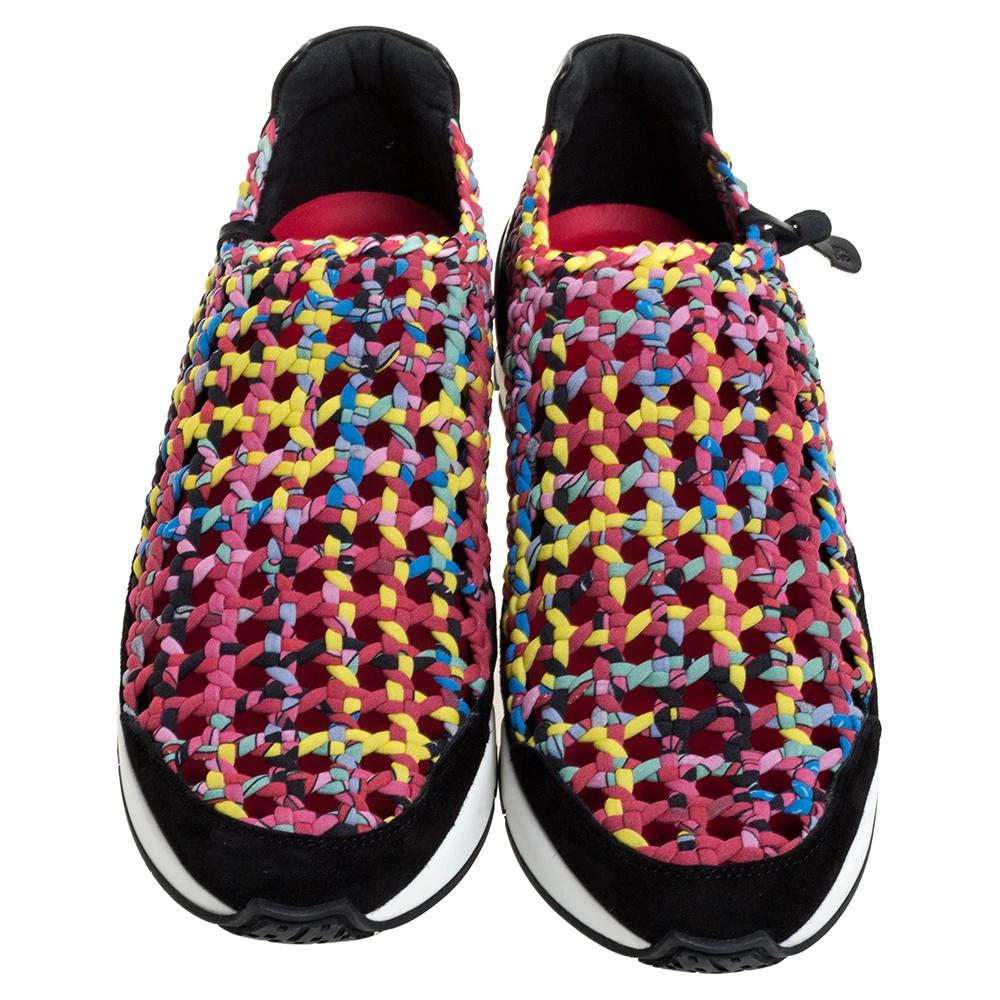 One’s wardrobe is incomplete without a good pair of sneakers and what better than these Hermes ones! These low top sneakers have been crafted from braided fabric and styled with round toes and suede counters. They are complete with durable rubber soles and will look great with casuals.