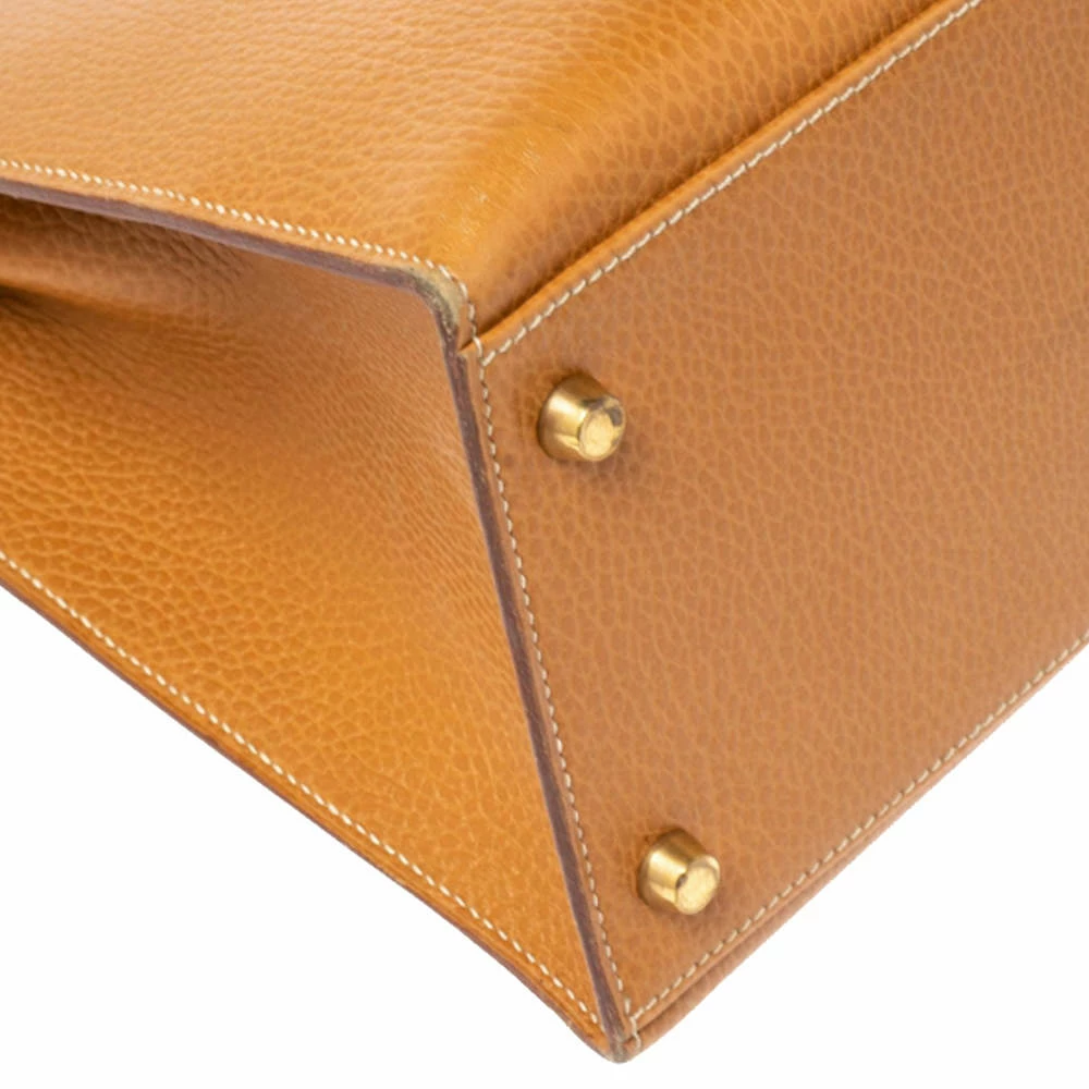 Your wait to own a Hermes Kelly Sellier is now over! Inspired by none other than Grace Kelly of Monaco, Hermes Kelly is carefully hand-stitched to perfection. The Maison doesn’t fail to impress us with this piece, the side stitches for a Sellier are on the outside and it’s a rigorous process to craft a Kelly Sellier. The Sellier is the classic Kelly and has a beautifully structured look and sharp edges that will stay for years. The bag can fit in all your daily necessities and still hold shape. The brown beauty is crafted from leather and has gold-plated hardware. This Kelly comes with the signature turn-lock closure, a single handle, and a padlock with its keys within a clochette. Invest in this stunner as it never goes out of style!