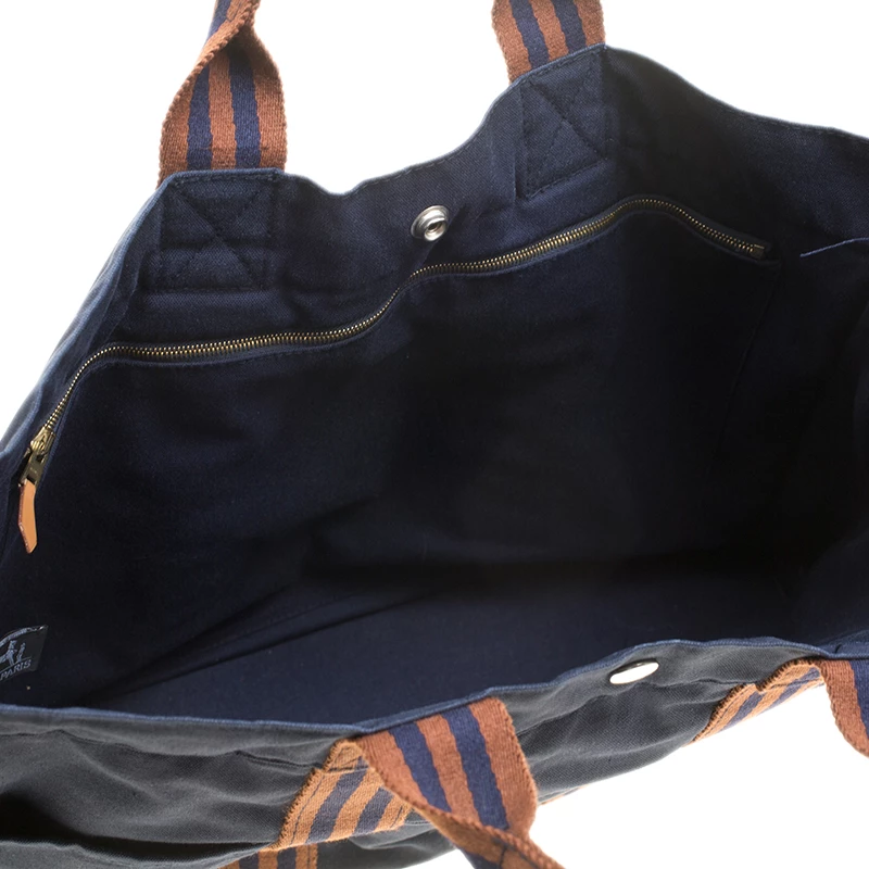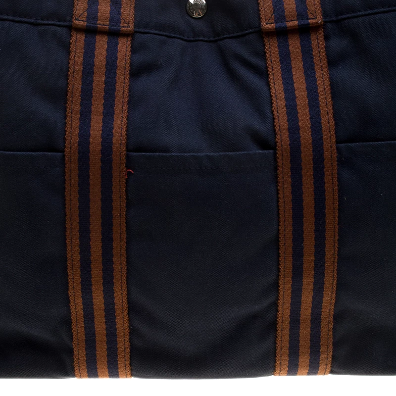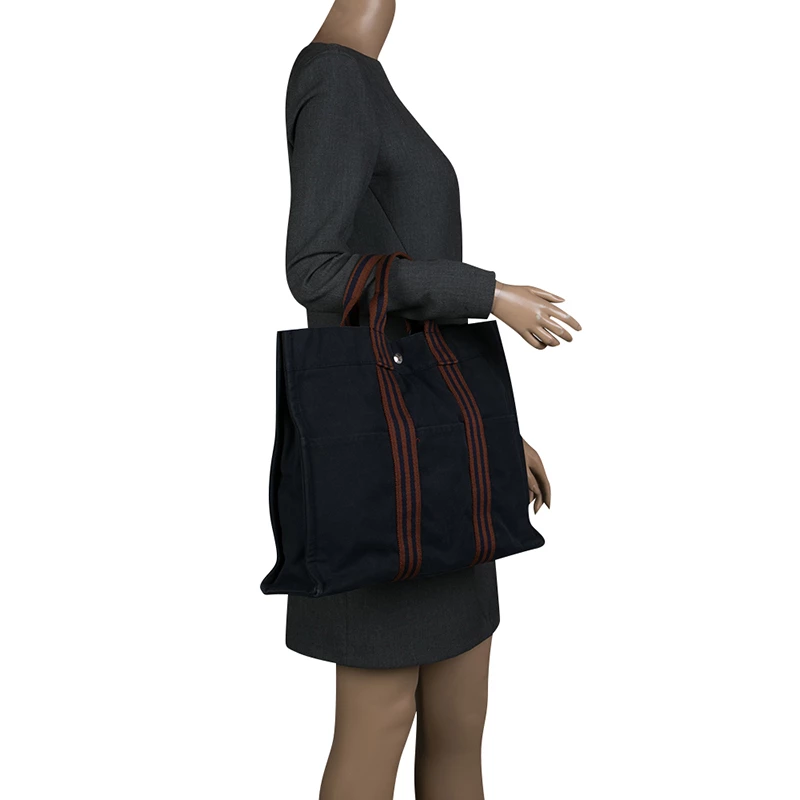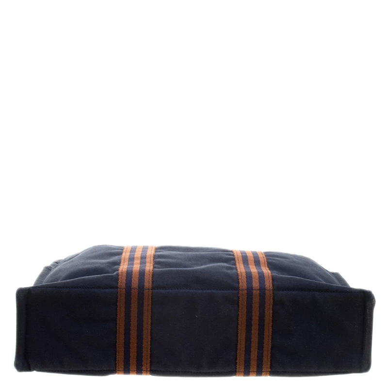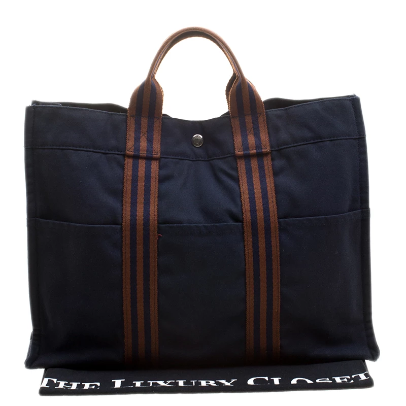 Handbags are more than just instruments to carry one’s essentials, they tell a woman’s sense of style. Hermes brings you one such creation meticulously made from canvas and perfectly sized to assist you while travelling. The navy blue Fourre Tout is spacious and it is equipped with two handles and multiple slip pockets on the exterior.