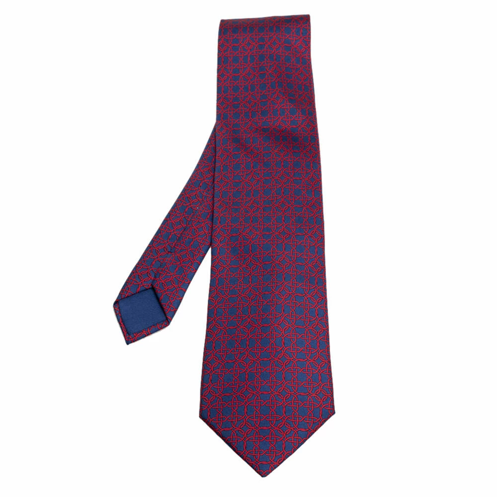 This Hermès tie is a perfect formal accessory that has a sharp and modern appeal. Made from silk, it features a navy blue shade, geometric prints, and the brand label neatly stitched at the back. It is sure to add oodles of style to your blazers.
