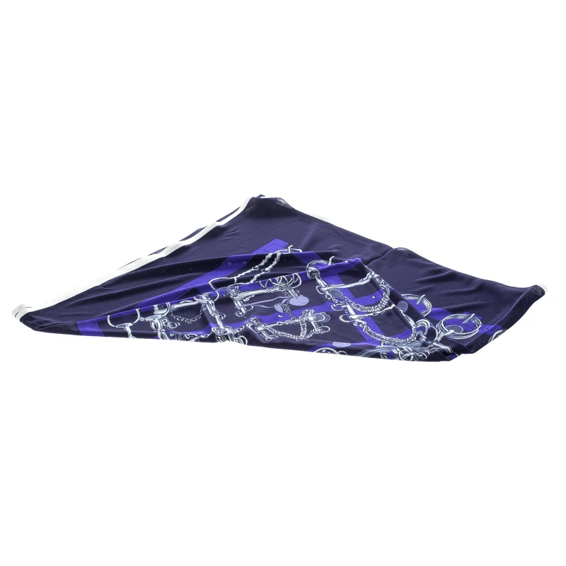 Complete your ensembles with a touch of luxury using this Hermes scarf! Designed with prints of Mors et Filets and finished with hemmed edges, the silk scarf simply delights. It will surely make one stylish accessory in your closet.