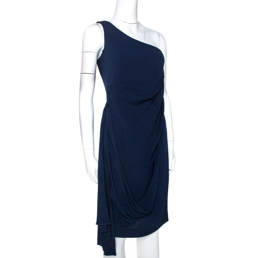 This opulent and flattering draped dress by Hermes has the captivating power to win you those boundless looks. Crafted from silk, it features one shoulder detailing along with a side loop. You can team this stunner of an outfit with gold accessories and sandals for an evening look.