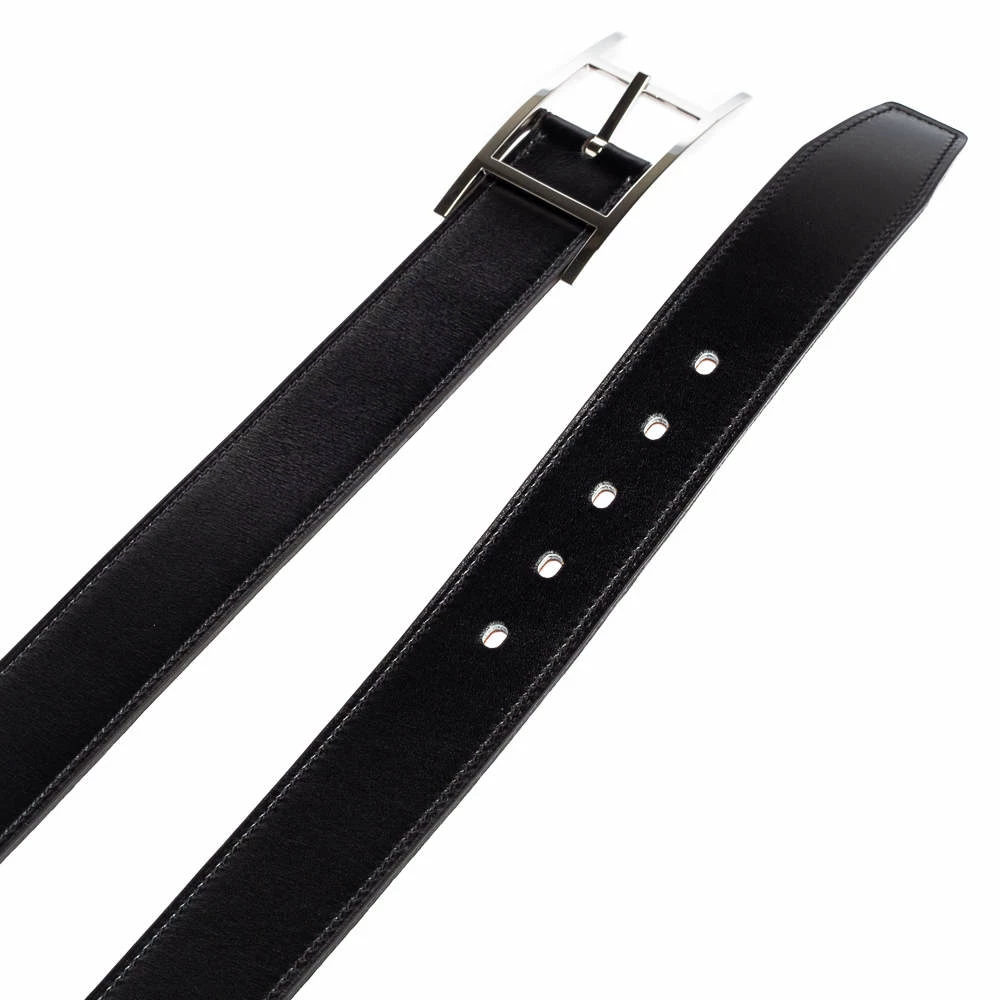 Designed to be reversible, this Quentin belt by Hermes has one side in Box leather and the other in Togo leather. It is secured by a shiny silver-tone pin buckle shaped as the letter ‘H’. This wardrobe essential will continually complement your style.