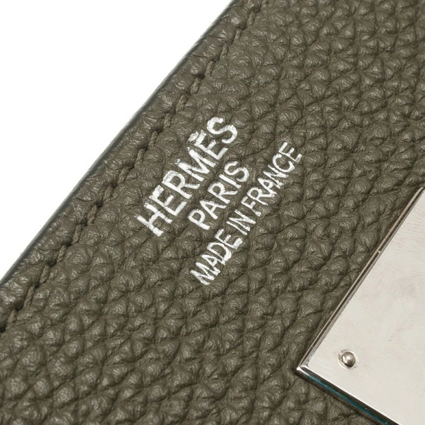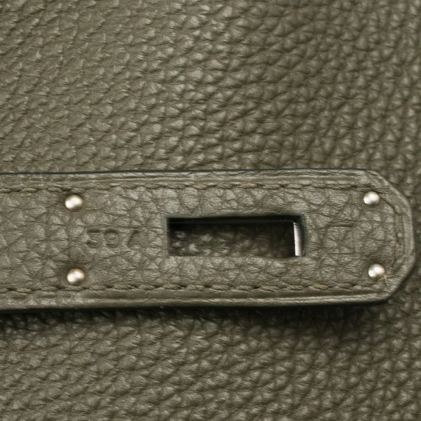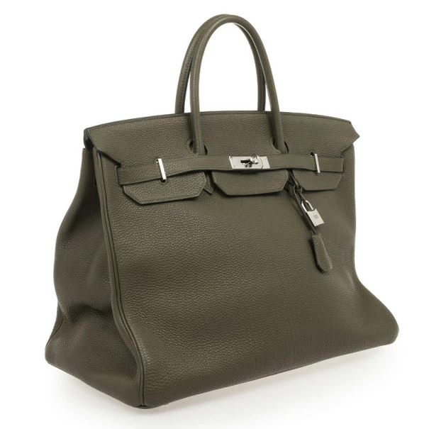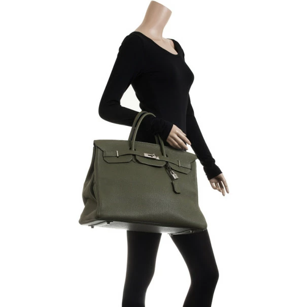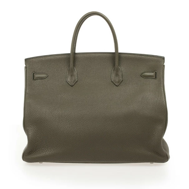 Wear this classic Olive Togo Birkin 40 from luxurious label Hermes season after season. This version is crafted from supple Togo leather in a versatile shade of olive. The iconic shaped exterior is detailed with a twist lock closure, a leather clochette, double handles and a polished palladium key and lock. Its very spacious interior is lined with leather and features a zipped pocket and two patch pockets.Final sale, no returns.