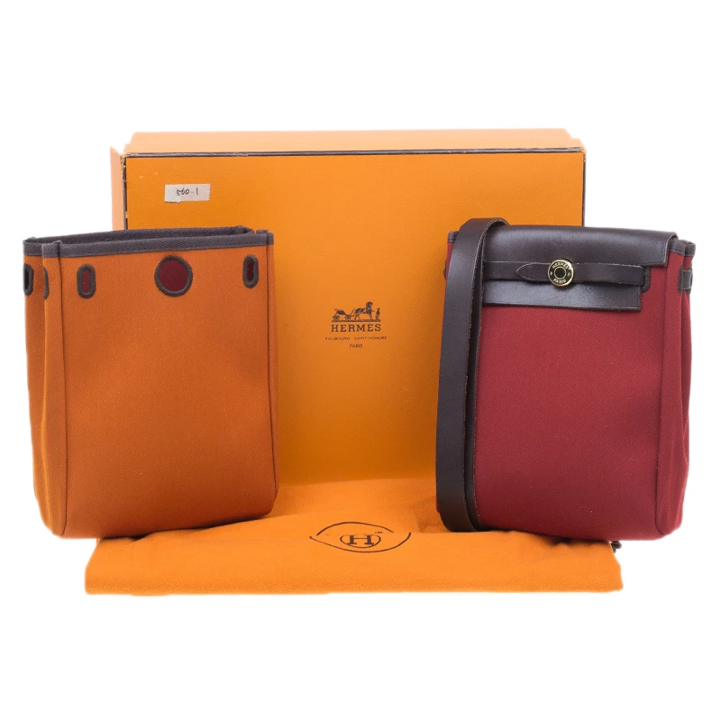 Carry the color of your choice and mood! These stylish crossbody bags come from the house of Hermes. Crafted in red and orange canvas, they come with a draw belt and flap which can be used with both of the pouches. These crossbody bags by Hermes are practical and chic.