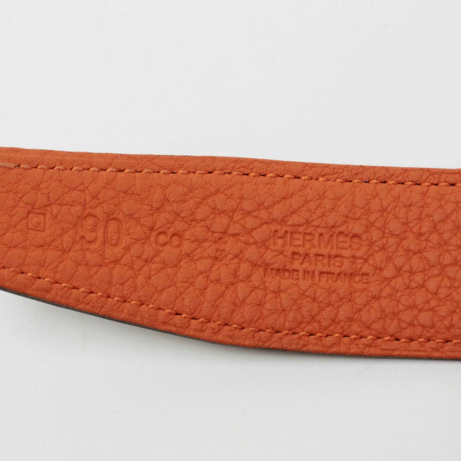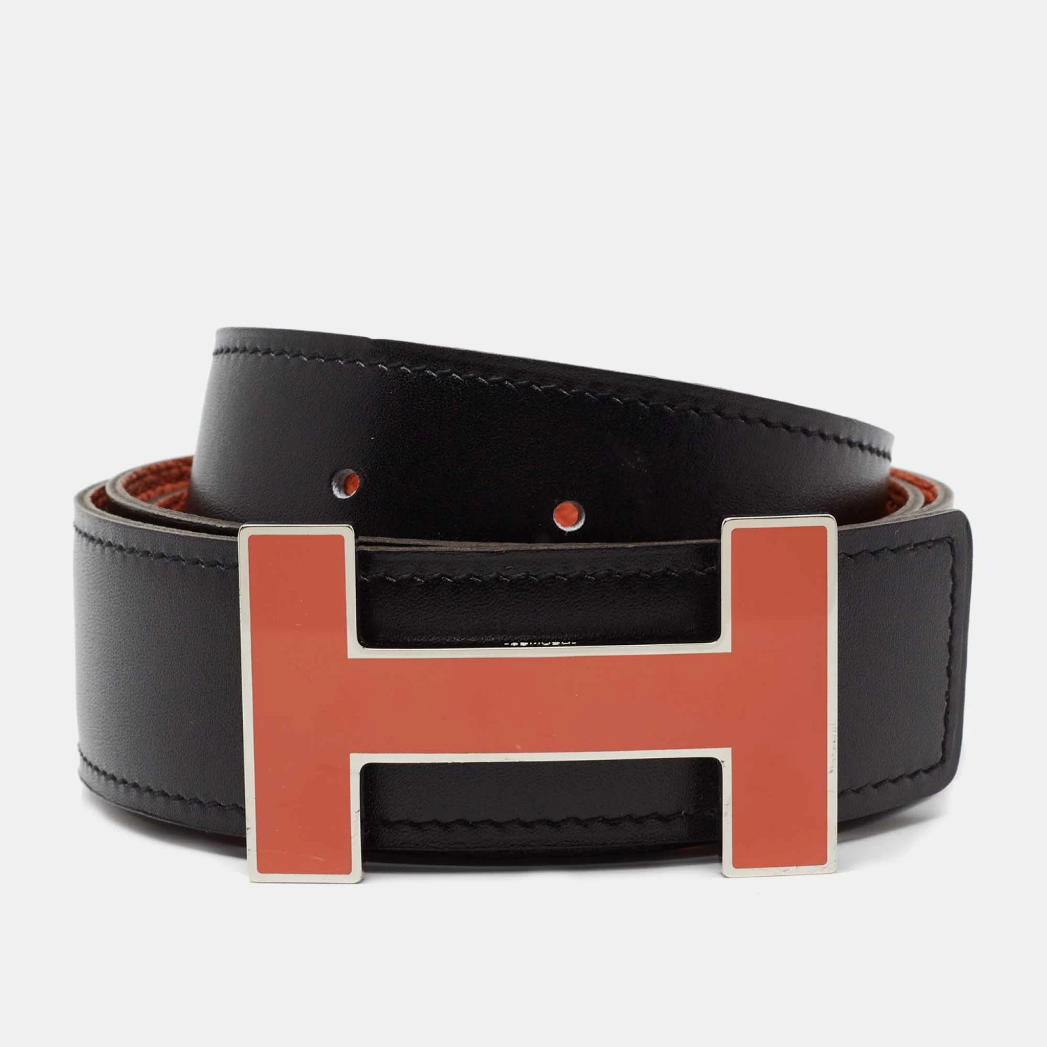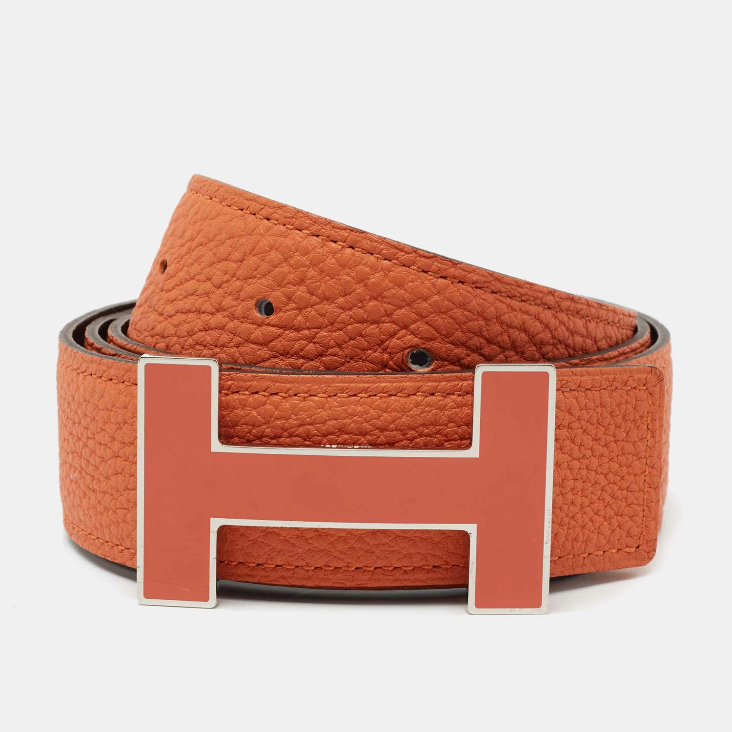 Give your outfit a better fit and stylish look with this Hermes belt. It is made from leather and flaunts silver-tone hardware, has a logo at the buckle, and is 90cm in length. With a reversible design, it is a must-have.