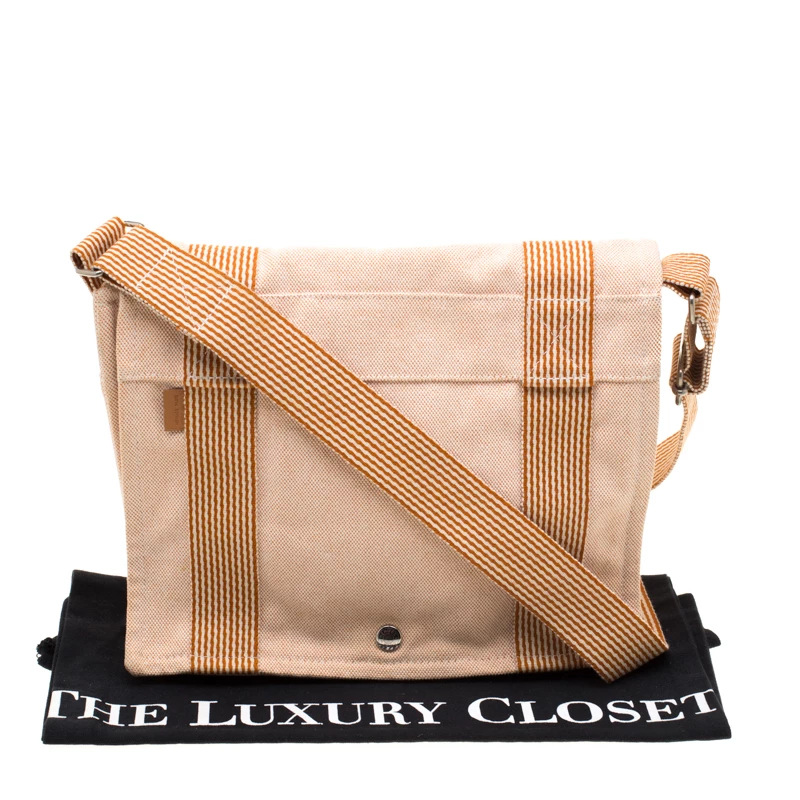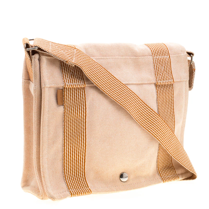 Hermes is a brand that delivers crafts with art and creativity. This essential Vassus messenger bag is made from canvas and has an adjustable shoulder strap. The front flap opens to an interior that houses a zip pocket and will hold your basics with ease.