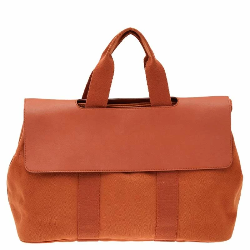 The Hermès Valparaiso bag is a luxe creation destined to be a favorite in your closet. This gorgeous Valparaiso MM is crafted in orange canvas and leather. It has two handles and a flap top to secure the well-sized canvas interior.
