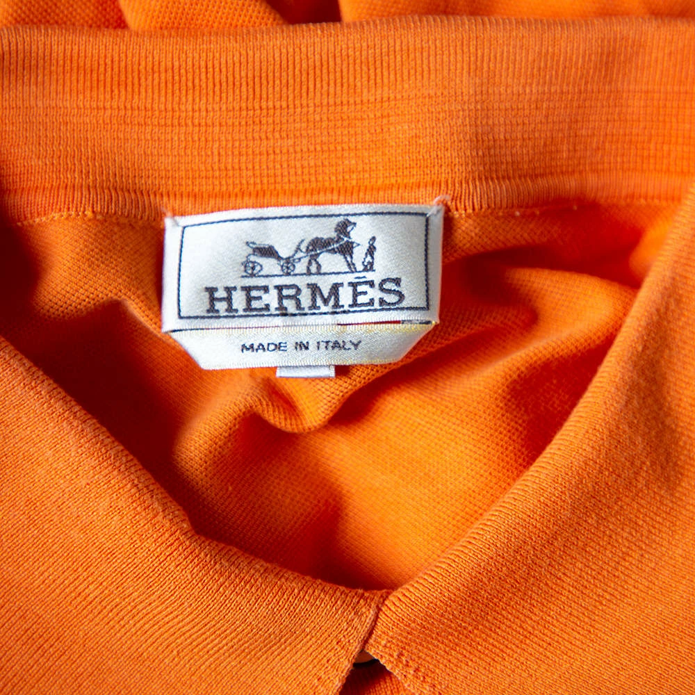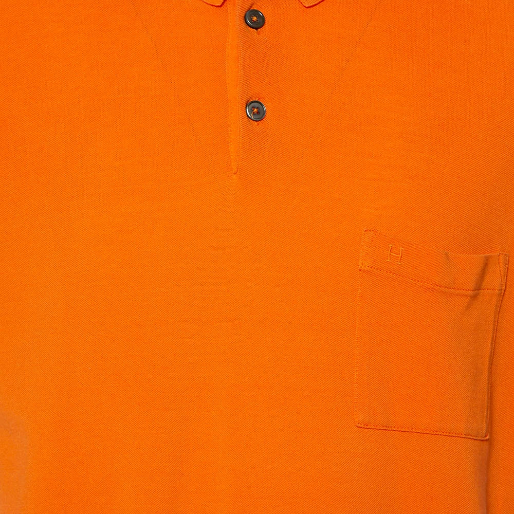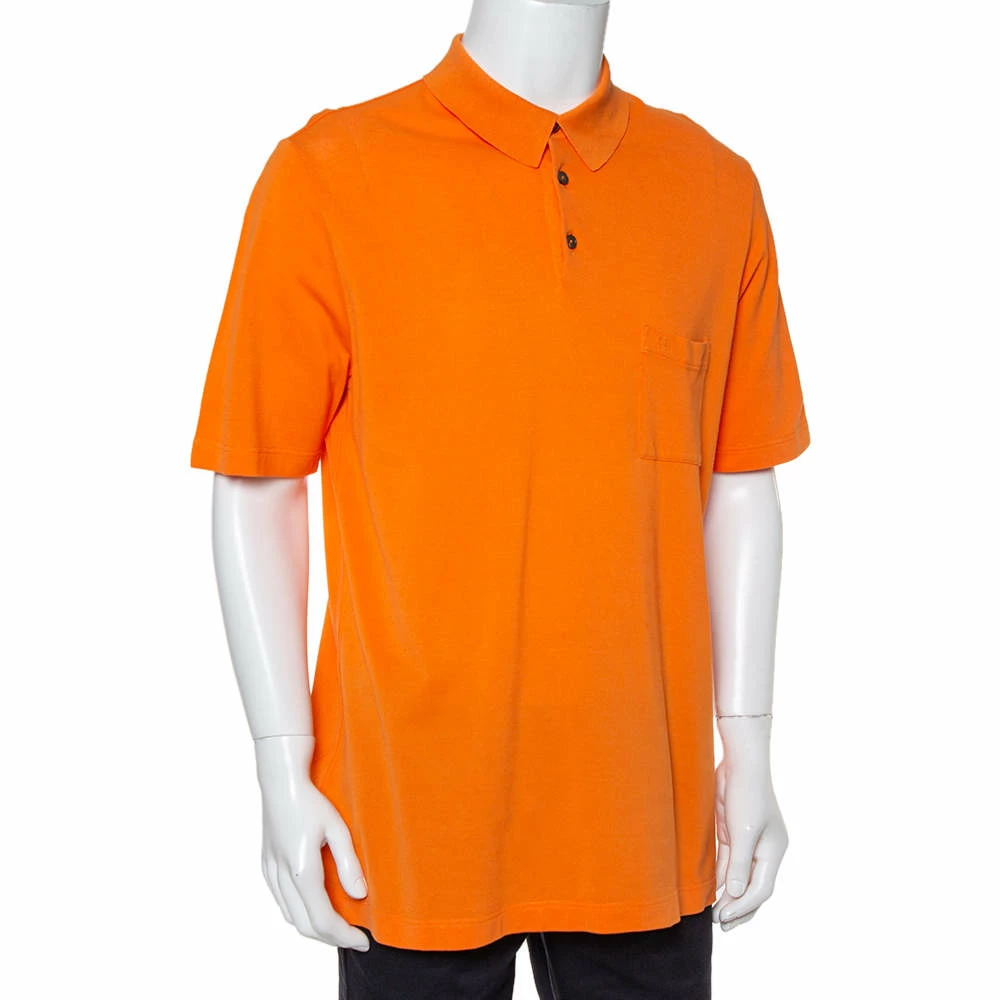 Hermes’ Polo T-shirt ensures comfort with a simple yet luxe tone of style. It is made from cotton and designed with short sleeves, buttons at the front, a simple collar, and a chest pocket. The orange shirt will work well with basic jeans, chinos, and shorts.