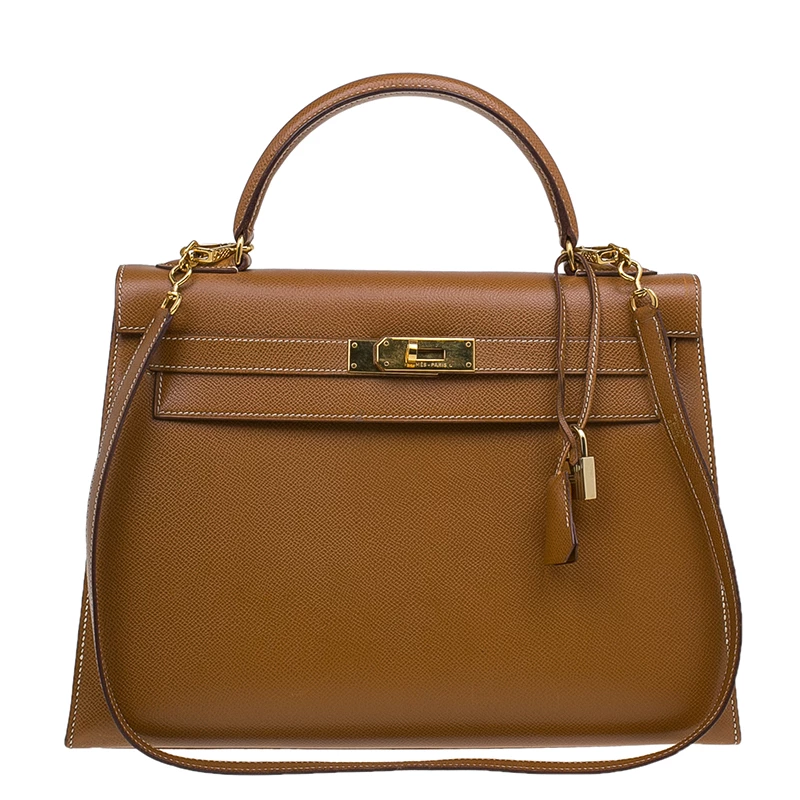 The famous Kelly handbags by Hermes will remain a must have bag for years to come. This version is crafted from Epsom leather in orange. The classic exterior is detailed with a gold-tone twist lock closure, a leather clochette, a top handle and a removable shoulder strap. It comes with a polished gold-tone key, lock, and four protective feet. The spacious interior is leather lined and features a zipped pocket, perfect for holding daily essentials.