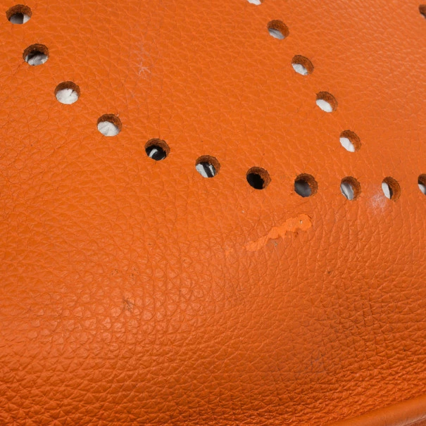 This chic Evelyne shoulder bag by Hermes is the perfect mix of luxury and comfort. Crafted from supple grained leather in Hermes’s signature orange, the exterior is accented with a perforated H design, back pocket and adjustable shoulder strap. Its spacious interior is lined with soft suede and is ideal for carrying your daily essentials.Original Retail Price: US $3,125