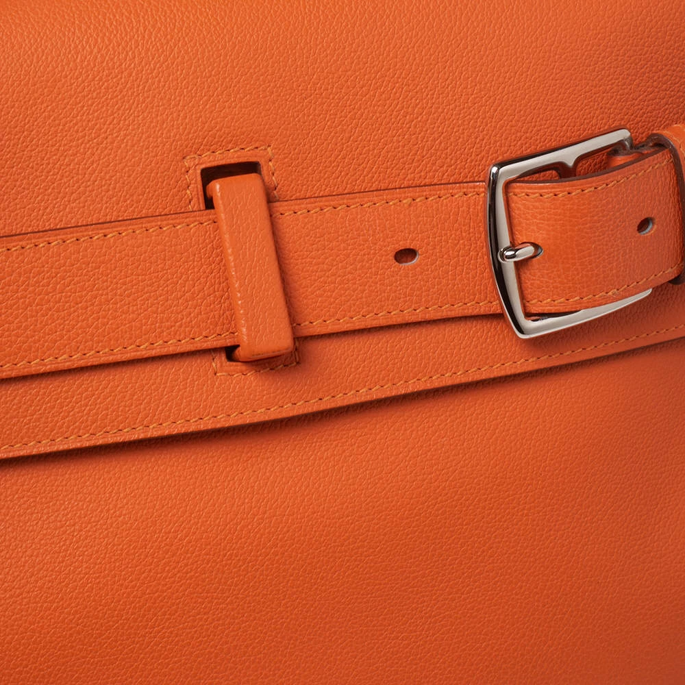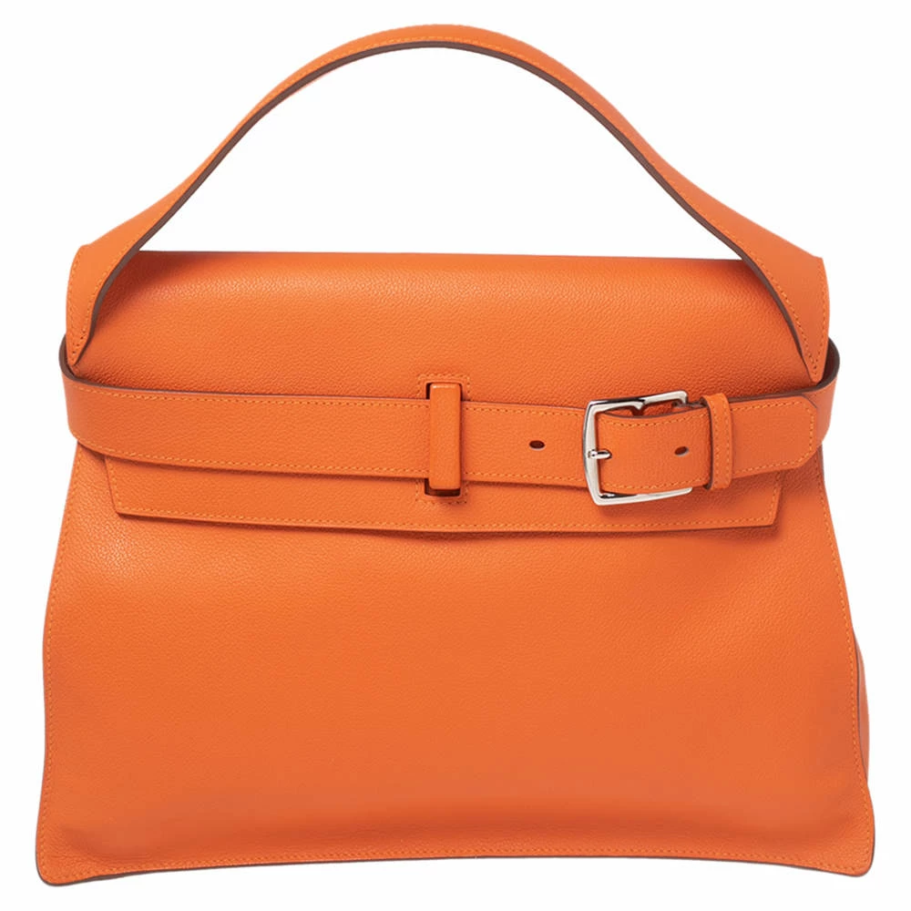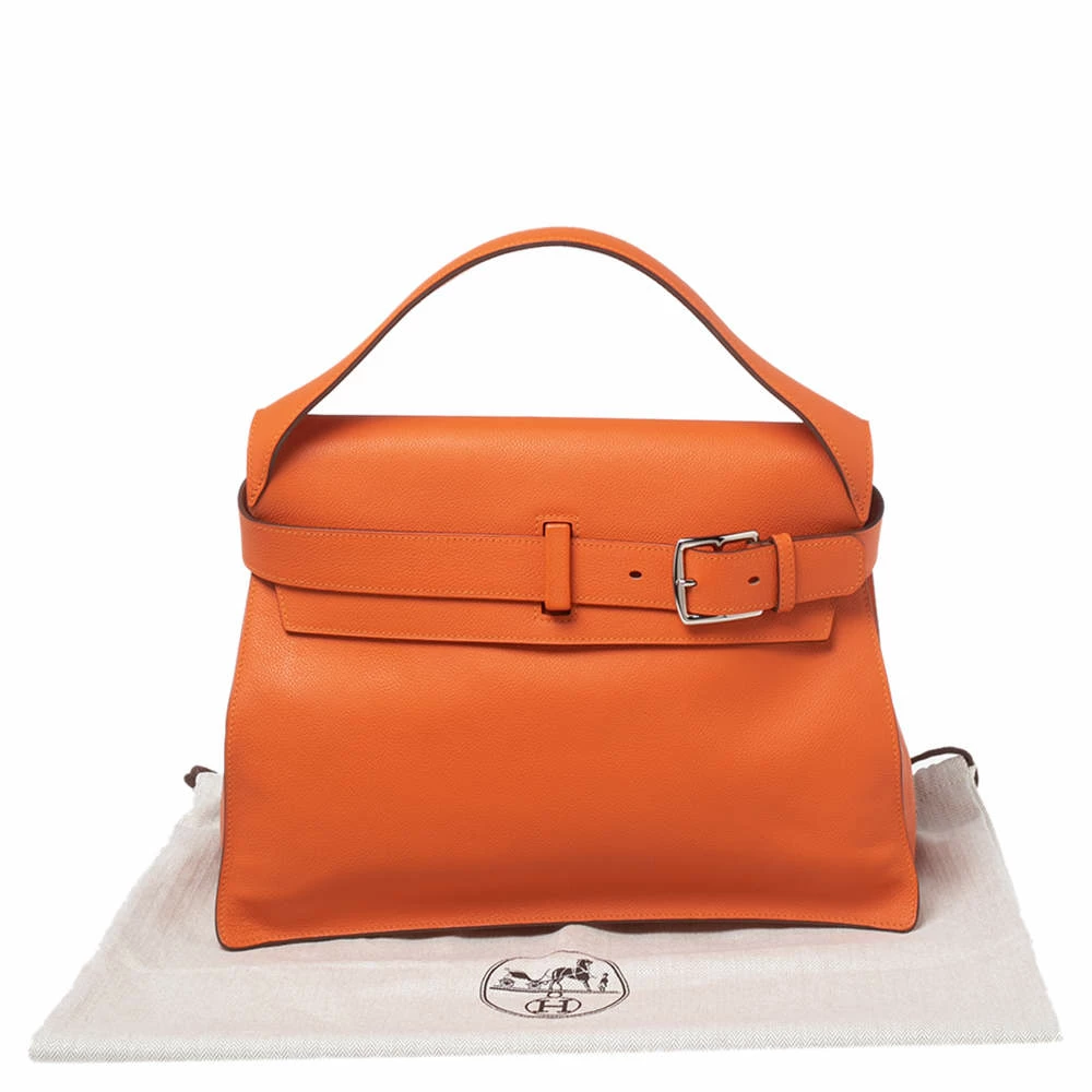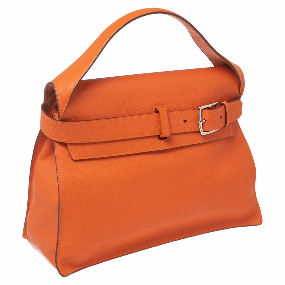 This Hermes bag is anything but ordinary! It has been crafted from Evercolor leather and creatively styled with an adjustable buckle belt closure on the front. It boasts of a single top handle and a leather-lined interior that gladly embraces all the essentials you introduce it to. Elegant and sophisticated, it deserves to be carried by you.