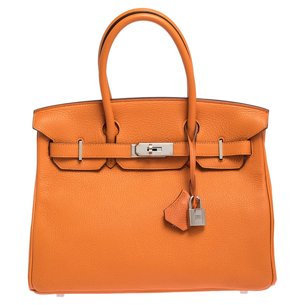 A bag that has become a hallmark of luxury and class, the Birkin from Hermes is one of the most coveted bags in the world. Custom-made on the suggestions of Jane Birkin, hence the namesake, this bag is aimed to fit the wants of the fast-paced life of modern women. Timeless design coupled with rich craftsmanship, the body of this Birkin 30 bag is crafted from Togo leather. Its foldover top is secured by silver-tone turn-lock closure, accompanied by a dangling lock and key which is safe within a leather clochette. The interior of the bag has a leather lining. Complete with dual-rolled handles and studs at the bottom, this bag is an investment that will last you for years.