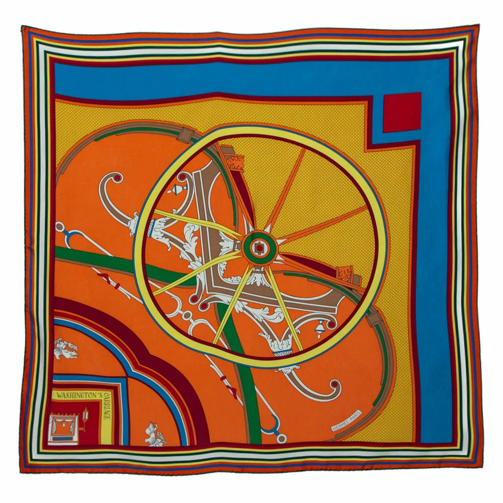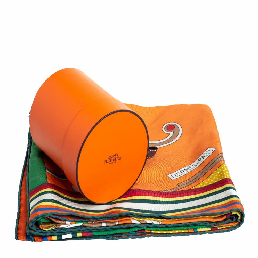 Keep yourself snug with this awesome piece of scarf from the house of Hermes. Add this orange-colored scarf to your casual outfit this season for an edgy appeal.