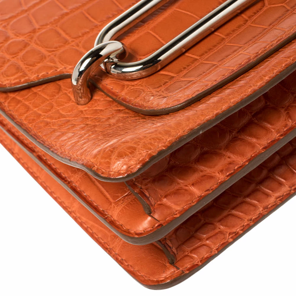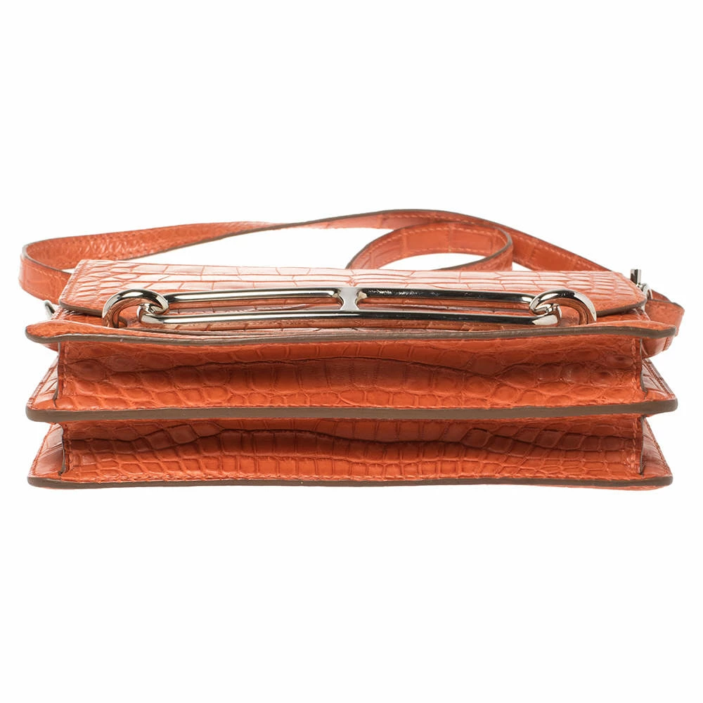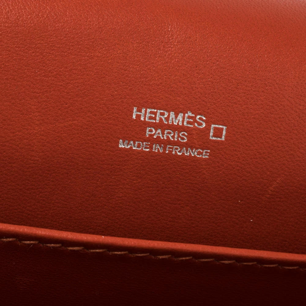 Hermes Roulis is the perfect substitute for the luxurious Constance bag. This compact bag was introduced in the Spring/Summer 2011 collection and is hand-stitched to perfection. It has a sharp-looking structure, clean lines, and a flap front with a chain buckle detail. Crafted from leather in an orange shade, the interior is meticulously designed to ensure your belongings will be found in their designated place. Complete with a slip pocket at the rear and a shoulder strap for an easy carriage, this high-style creation deserves to be yours. (Available for UAE Customers Only)