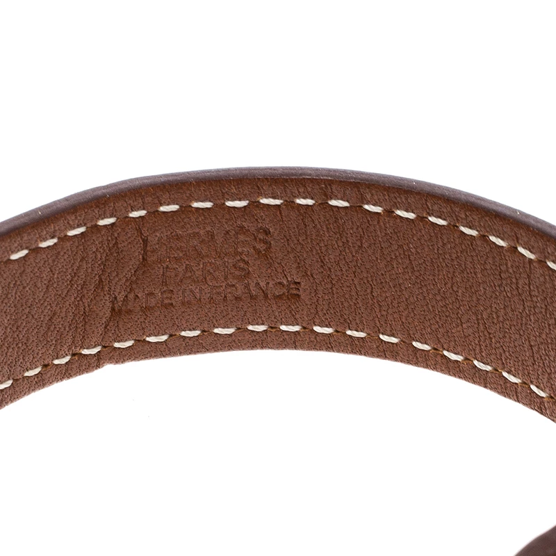Coming from the house of Hermes, this Pavane bracelet is brilliantly crafted from a brown leather body and detailed with contrast stitching. It comes topped with a gold-plated metal centre and looks best when styled with off-duty looks.