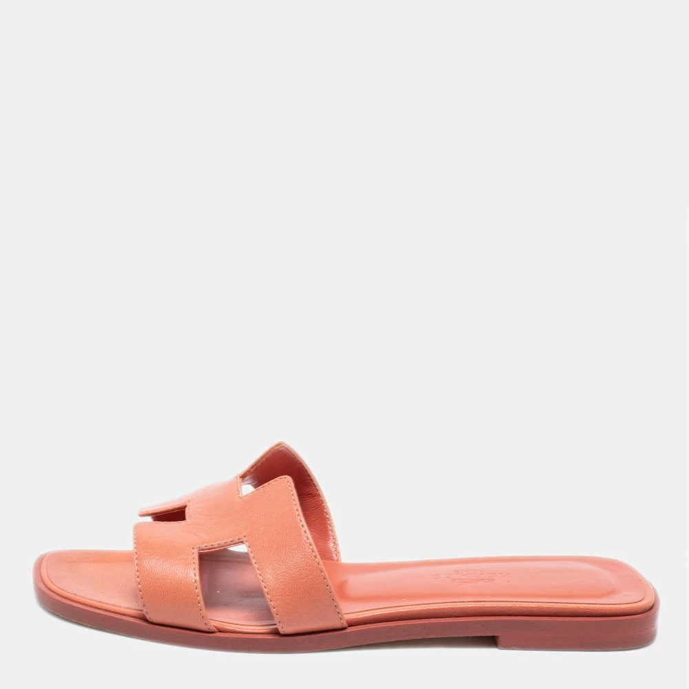 Add the iconic Hermès Oran sandals to your shoe collection with this pair. These peach-hued flats have been crafted in Italy and they feature the iconic H on the vamps and lined insoles in leather to provide comfort at every step.